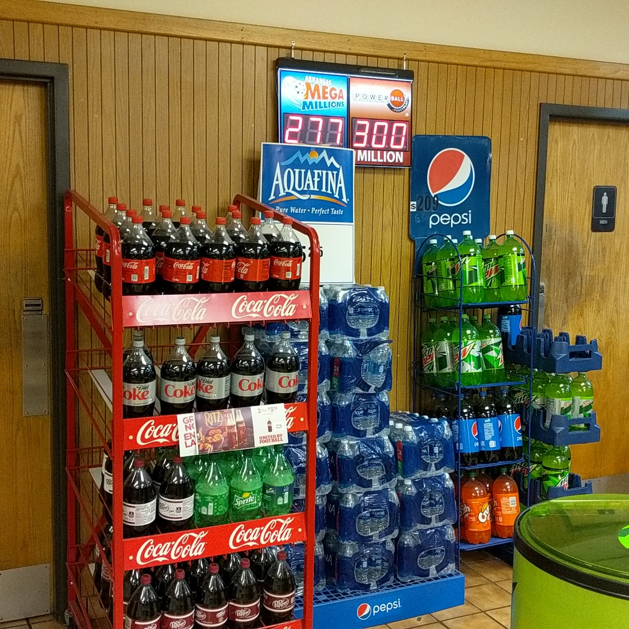Just a regular gas station but 8 pumps and 4 entrance/exits and plenty of parking, free air, and carwash wich you can pay for at pump!
