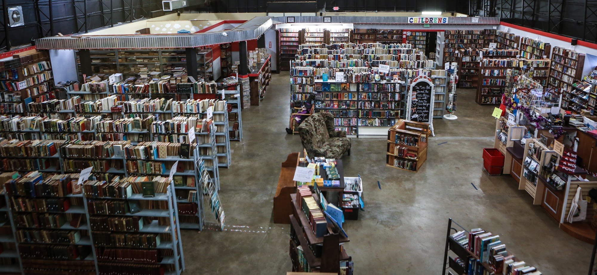 Large and well organized used bookstore with a cafe. They also have older books with color covers organized by color- perfect for interior designers! Large children’s section. ❤️