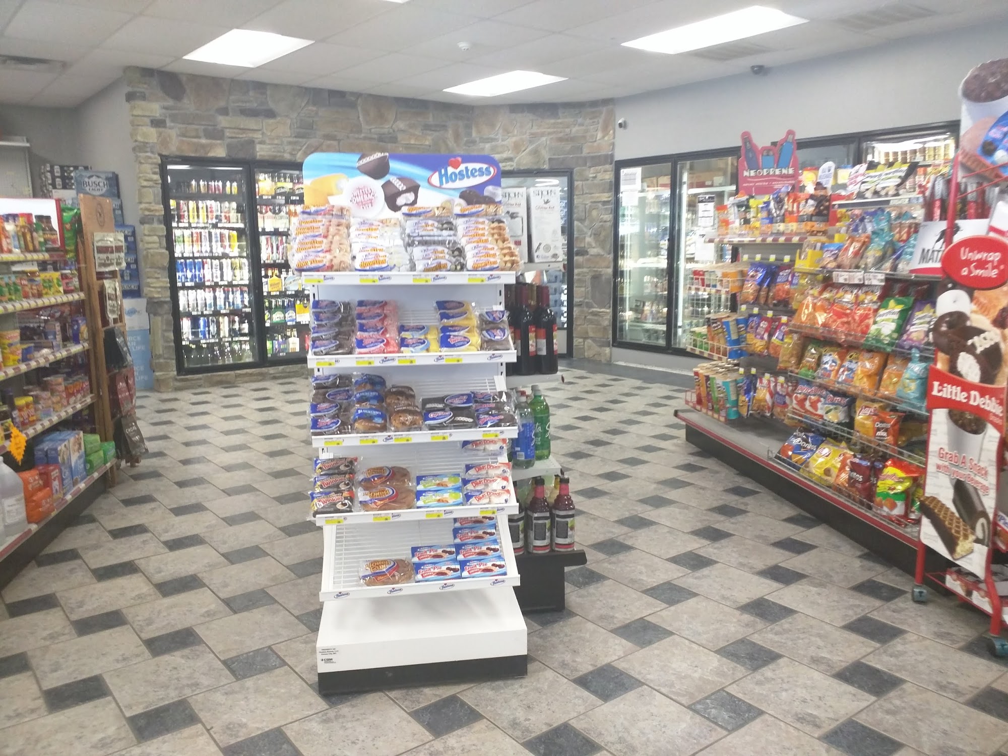 Gas station.lottery tickets .wine friendly servicecalso serve food breakfast sandwiches.