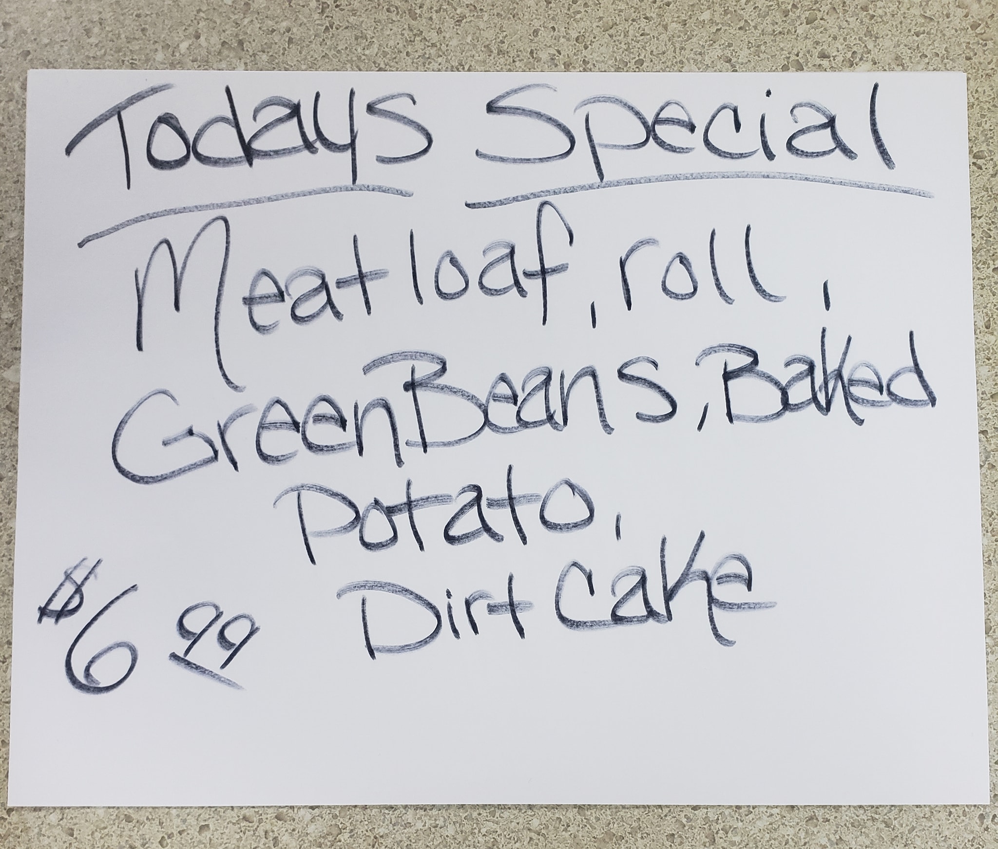 We just had the meatloaf special! It was wonderful! Thank you Watkins Station for the great meal! Highly recommend their food!