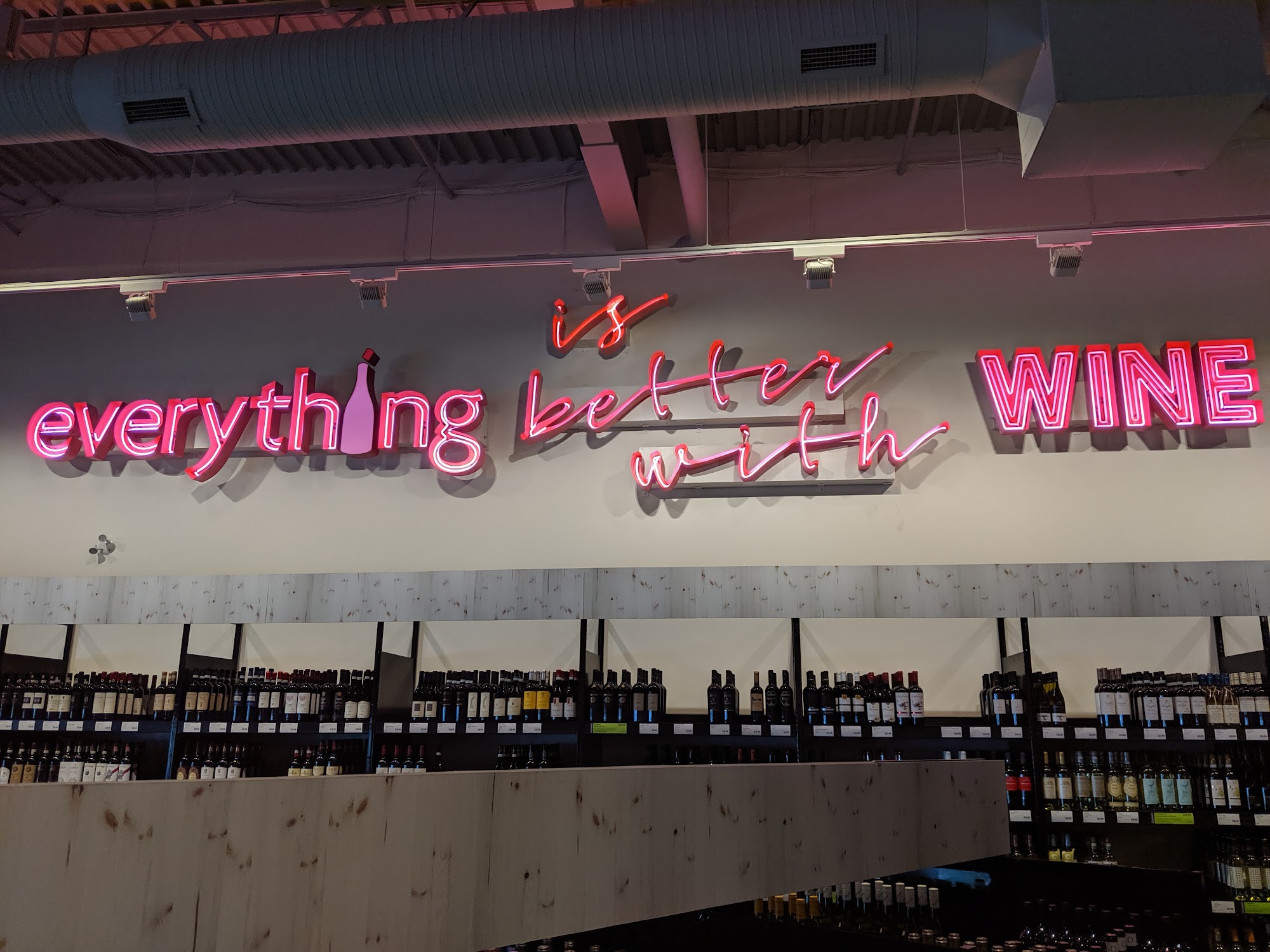 With the exception of the wine we bottle, we always go here. The wine selections are great and the staff are always willing to help and easy to find.