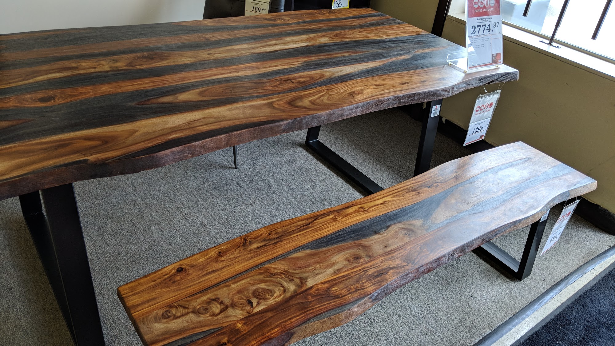 tv had a tag, 999$ tried to buy it she looked it up , sorry sir its 1150$ and this is why I walked out of your brick store UPDATE! It was Sunday so not JC 's fault, she was great. Boss man called me today and I got the good deal!! and lol, I bet the tag got updated Cheers!