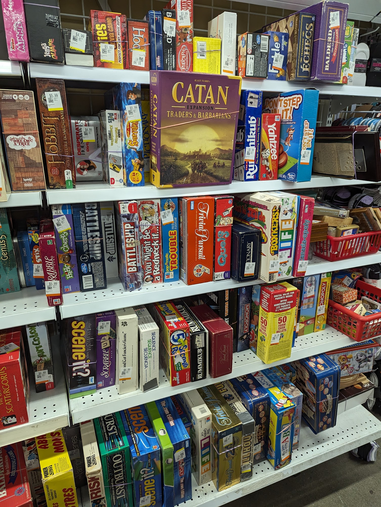 Excellent board game section but I was dismayed at the number of puzzle pieces on the ground under the puzzle shelf. I hope the staff can find a system that keeps the boxes closed! Should also be noted that this location does not offer changing rooms to try items on so come prepared.