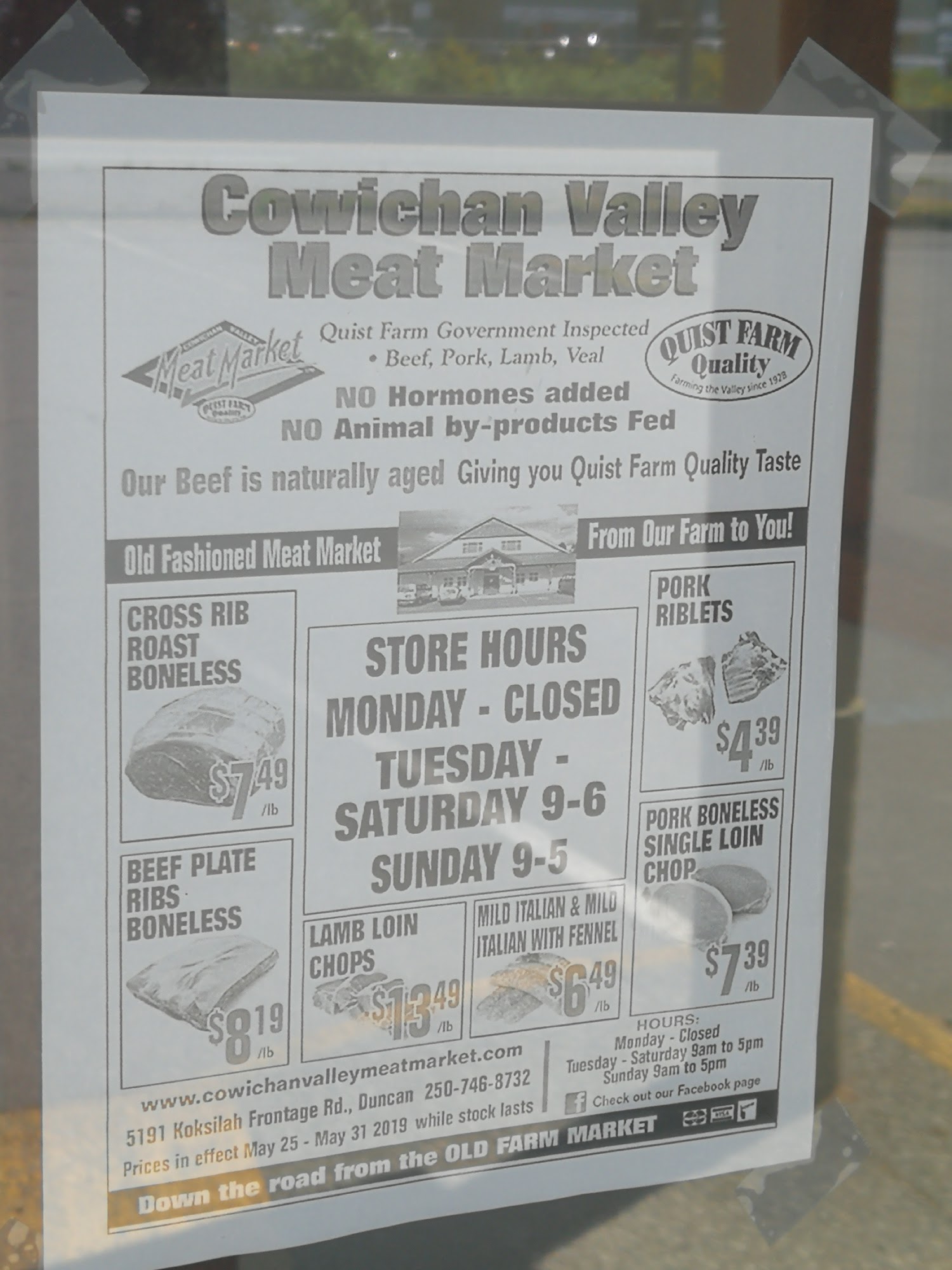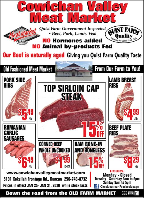 Large selection cut daily. Some of the best beef, lamb and pork products. There fresh ground lamb and racks of lamb have so much flavour. A must stop when driving up island from Victoria. Closed Mondays and closes @ 3 on Saturdays.