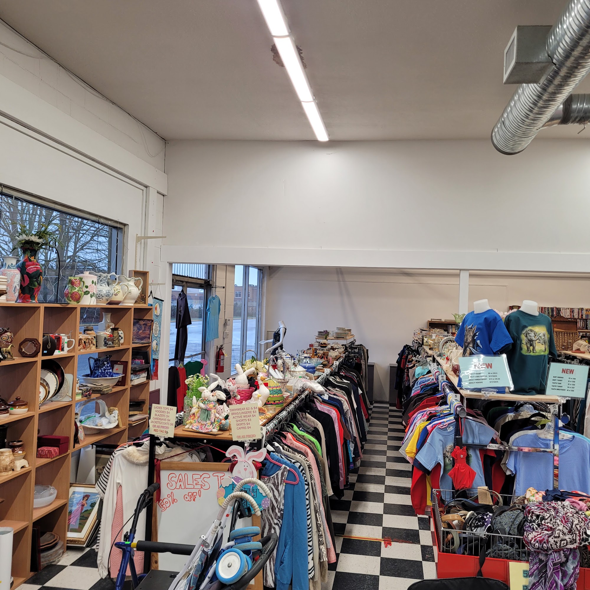 Friendly atmosphere. Very welcoming. Its a large thrift store and has everything you possibly could need or want you'll find here. And ita not over priced like value village does.