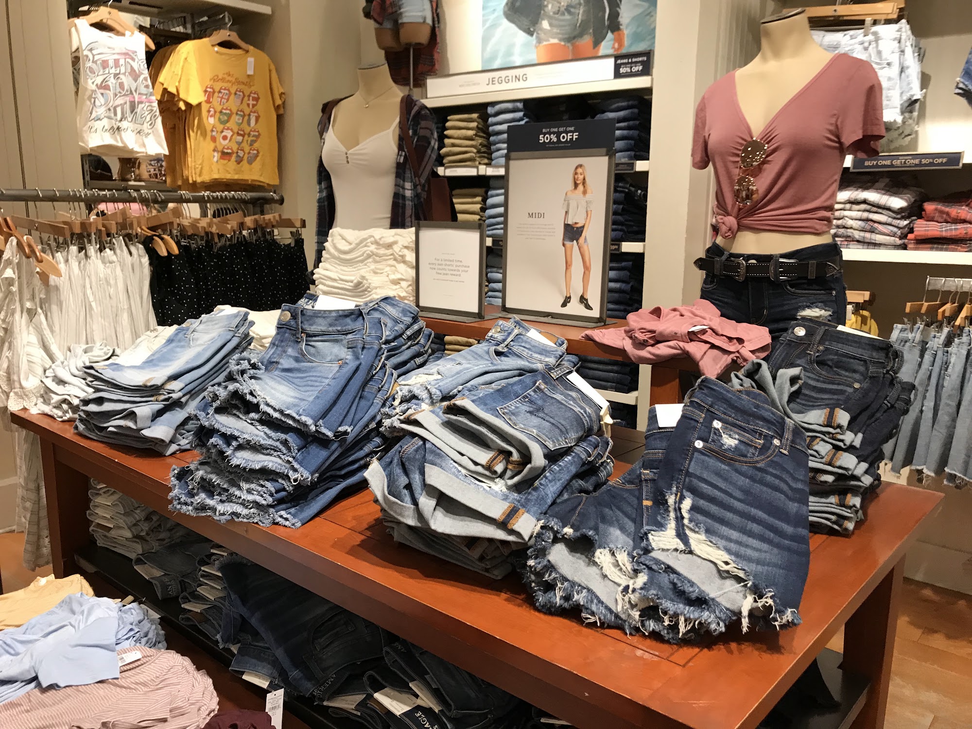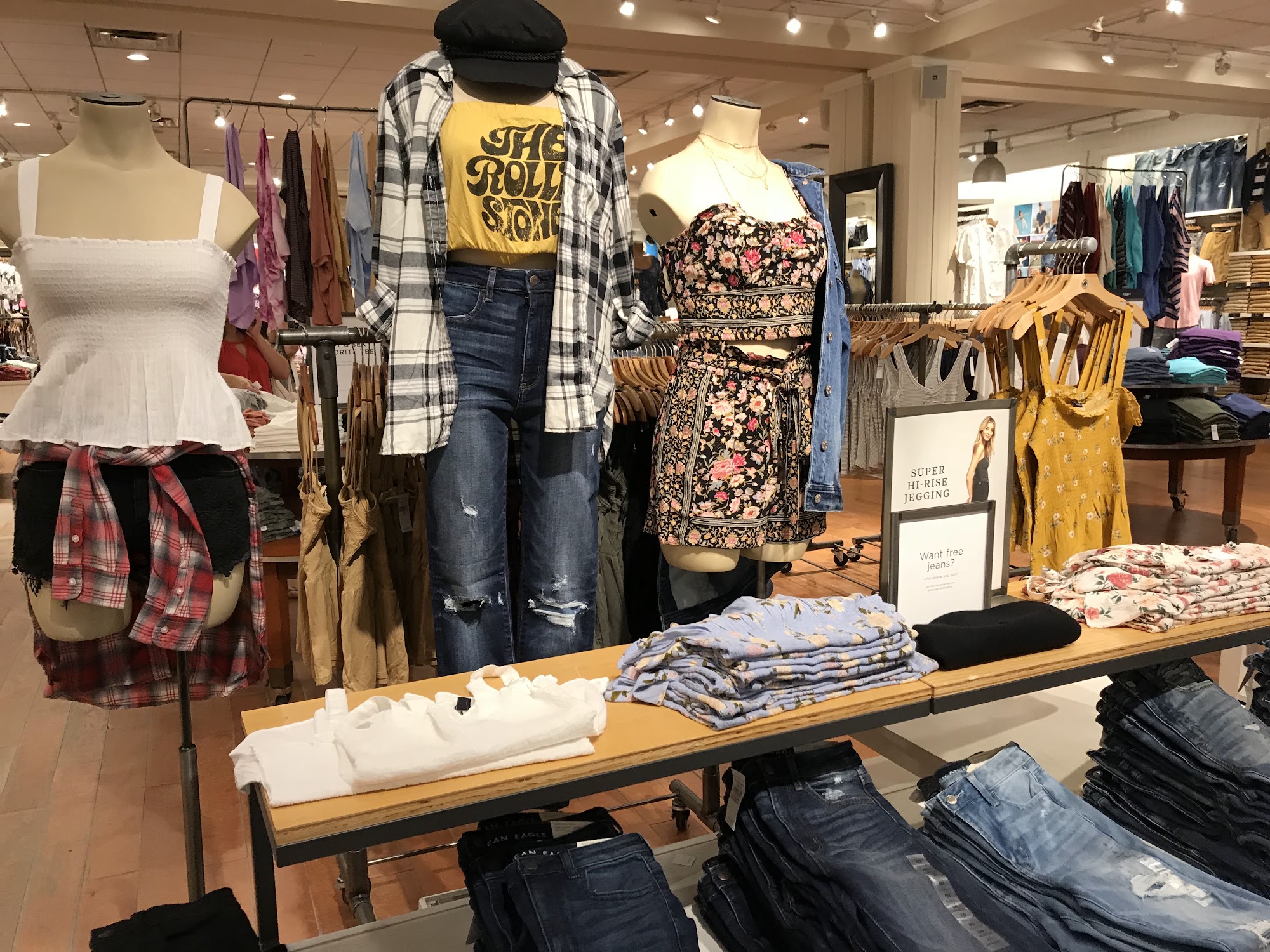 The American Eagle Store provides excellent customer service and a positive shopping experience. Staff members are described as amazing, helpful, understanding, and nice, often going above and beyond. Employees assist with finding clothes, offer style advice, and help pick out items like shirts, shorts, and jeans. They are also helpful with returns, online order pickups, and price matching. This service leaves customers feeling confident and results in a great shopping experience. The clothes themselves are loved and considered beautiful. The staff's phenomenal attitude and willingness to help without frustration make this location stand out for its amazing customer service.