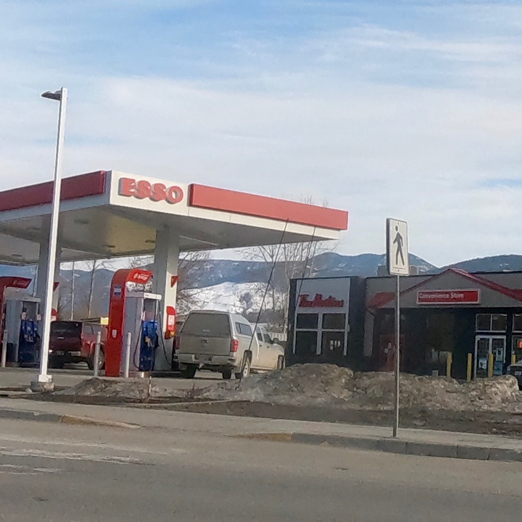 Esso is a typical gas station with many pumps and ample space around them. The store is small but clean and well maintained, offering a standard selection of snacks and drinks. Reviewers noted friendly staff, with great service and fresh coffee available late at night. However, the convenience store's hours may not align with expectations, as it is not always open 24 hours. Care is advised when navigating around the drive-through from Tim Hortons nearby, as it can be tight.
