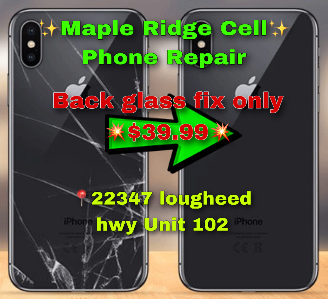 Maple Ridge Cell Phone Repair great customer service, very helpful and great deals. Happy with new Cell phone. AA++ guys keep it up