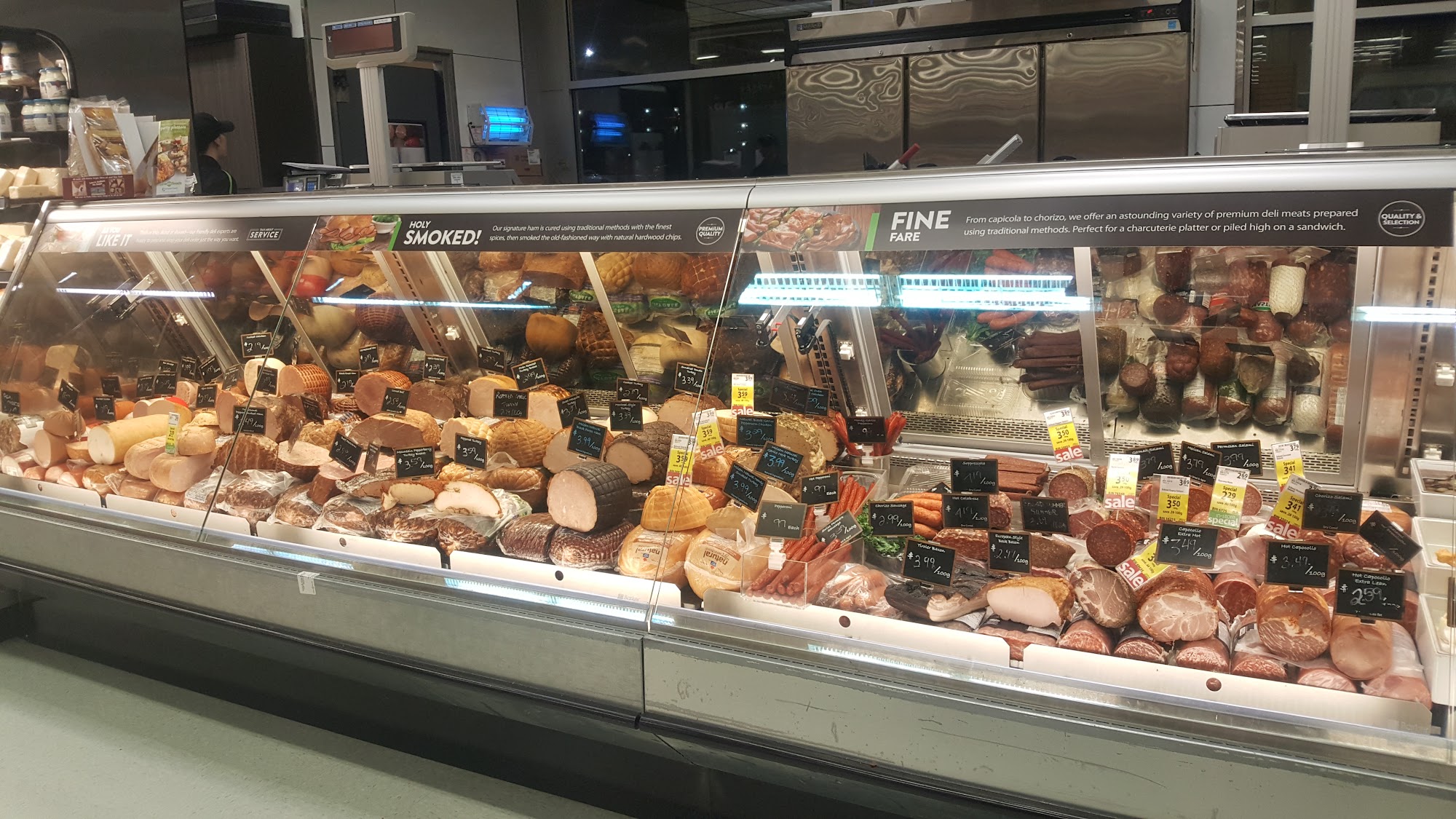 Save-On-Foods is a grocery store located near Valley Fair Mall, offering a wide selection of products, including a wine section and many last-minute dinner options. While some find the prices a bit high, the store provides many great choices. Customers appreciate the friendly staff and the convenient location, which is always maintained with security personnel present. However, some shoppers find the security staff overly attentive, following customers around the store. The store's price matching policy is limited, only matching certain stores like Walmart and Safeway, and some feel the Save-On-Foods card isn't worthwhile. The store has a diverse product range, but it lacks specific items like Indian spices and products such as Shan Masala or Tilda basmati rice. Overall, shoppers find the store pleasant with tasty eats, though experiences with staff vary, and some note issues with pricing and product selection.