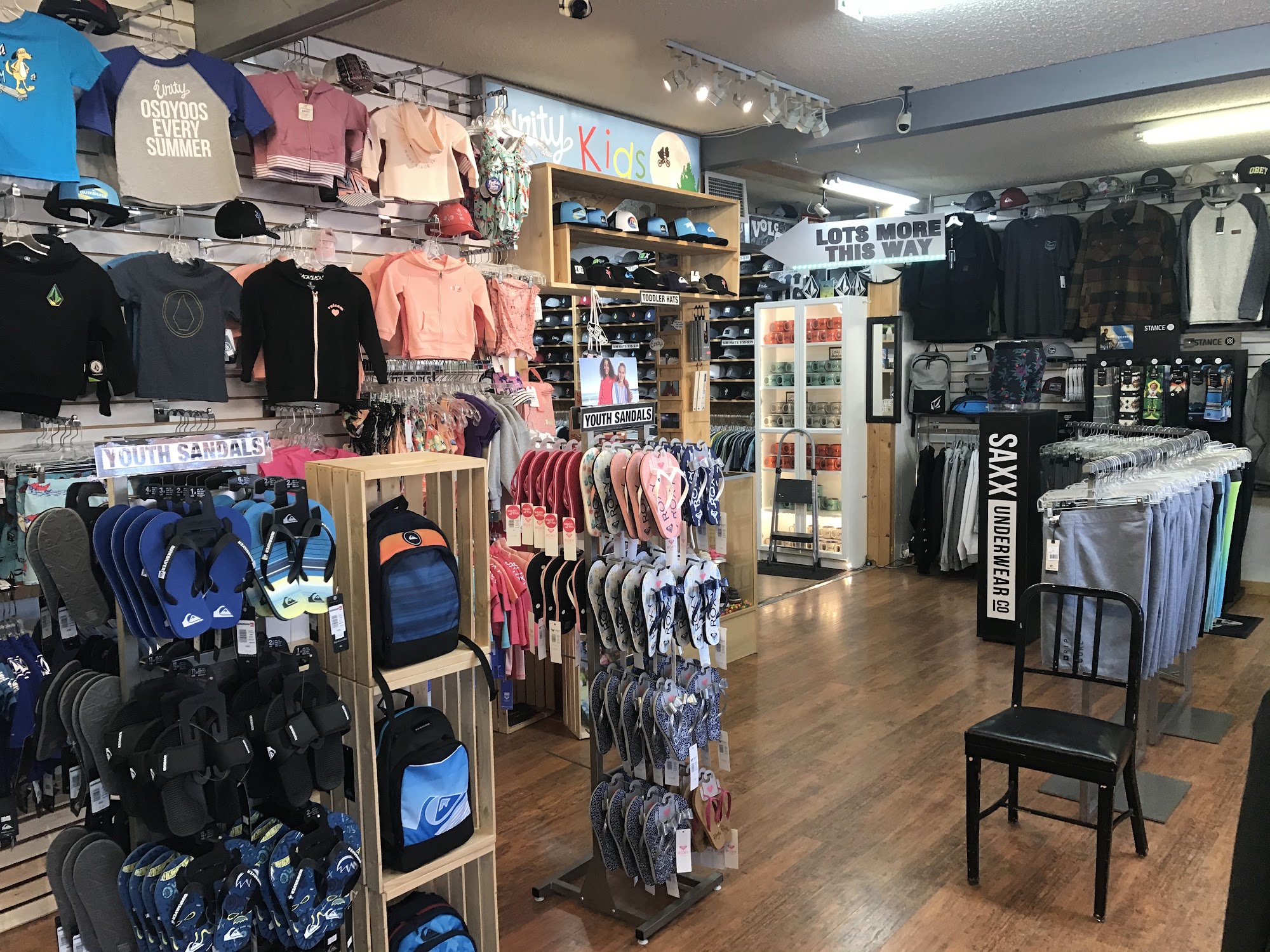 We are tourists and stopped at this shop for Osoyoos hoodies as souvenirs. Very well made clothes and the staff stayed near us to help and were amazing. They gave us car air fresheners and Unity Osoyoos stickers with our order. Really cool toys and antiquity from the 80's and 90's to look at throughout the store.