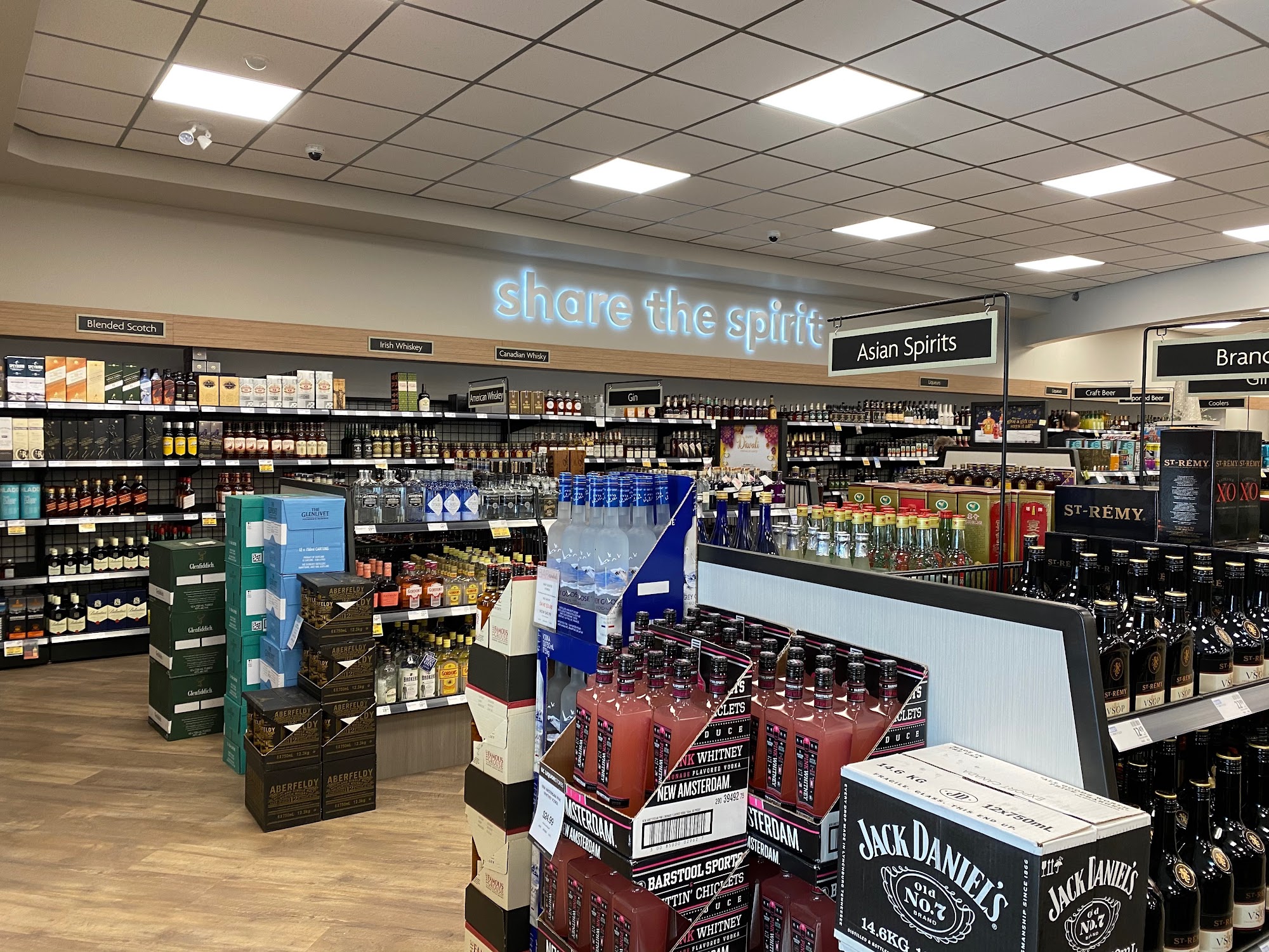 BCLIQUOR Penticton Plaza is a convenient and friendly store known for its good prices and helpful staff. Customers appreciate the relaxed environment, where staff do not hound them and are available to provide knowledgeable assistance about wines, whiskeys, rums, and scotch. The store is especially popular for quick bottle pickups, with many noting its location in the same parking lot as Safeway makes it very convenient. The selection of beer, particularly pale ales, is praised for being well-stocked, and some customers have found good deals on popular brands like Grey Goose. However, there are some downsides mentioned. The store plays piped noise music, which can make it hard to concentrate or focus on products. Additionally, the store lacks a points system, prompting some customers to shop elsewhere to earn rewards. There is also a desire for a larger selection of cold products, as many favorites are only available warm, and some find the current fridge offerings generic and boring. A suggestion from customers is to expand the cold section by reallocating space from warm products to boost sales. Overall, BCLIQUOR Penticton Plaza is valued for its prices, environment, and staff expertise, making it a popular choice for quick and affordable liquor shopping.