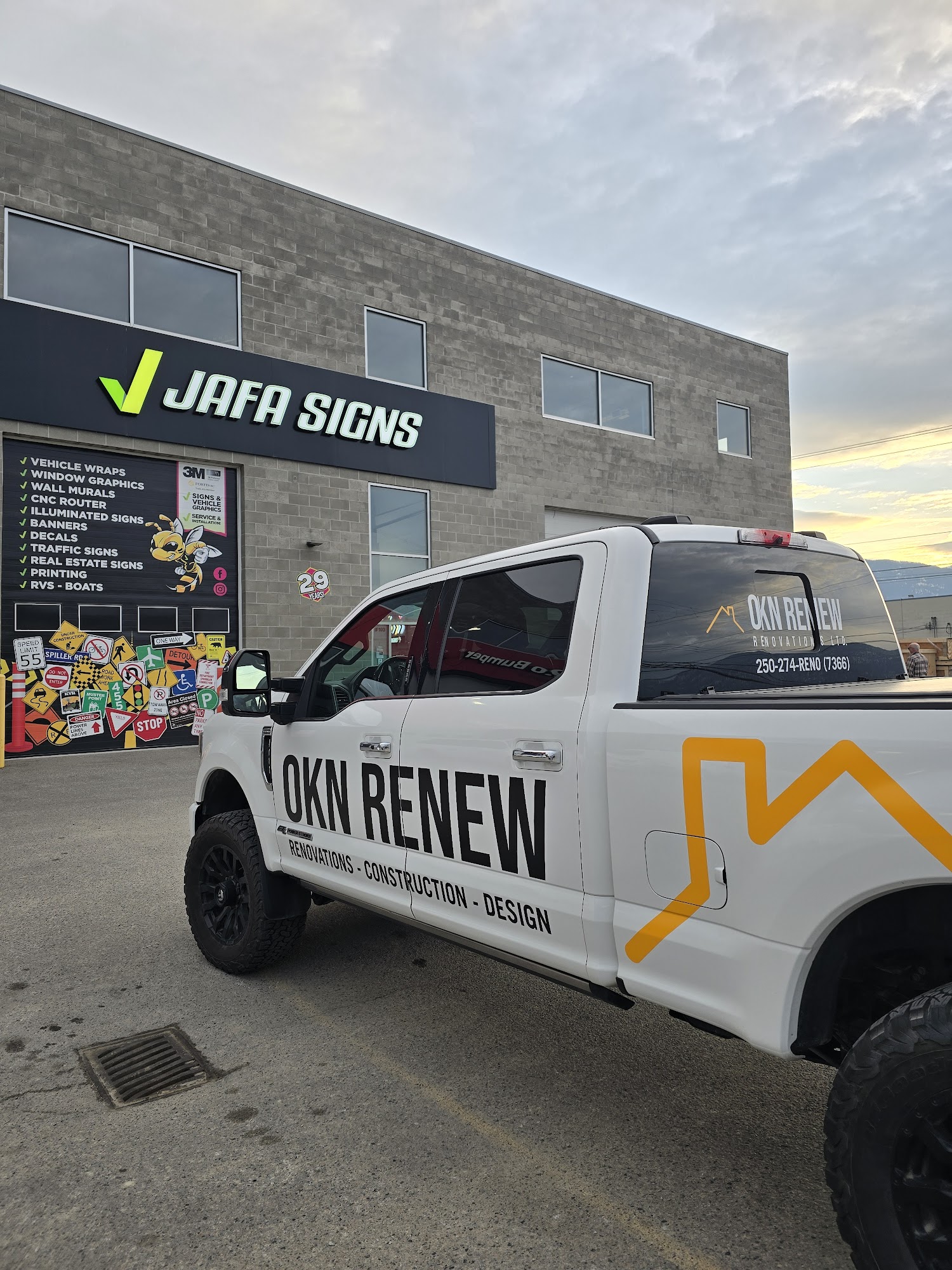JAFA Signs Ltd. has served the Okanagan for over 29 years. The crew includes award-winning graphic designers, sign manufacturers, certified installers, and dedicated sales staff. They provide unique signs, vehicle graphics, wraps, decals, banners, CNC letters, murals, and logo apparel, along with planning, design, fabrication, and installation services. Customers report the staff as very knowledgeable, helpful, and quick, with clear communication throughout the process. The company is known for going above and beyond, creating impressive graphics, and ensuring timeliness. Work is completed for the quoted price and by the promised deadline, with proofs provided beforehand. Reviews highlight fantastic results that make vehicles look brand new and exceed expectations. Many customers state they couldn't be happier and absolutely recommend JAFA Signs.