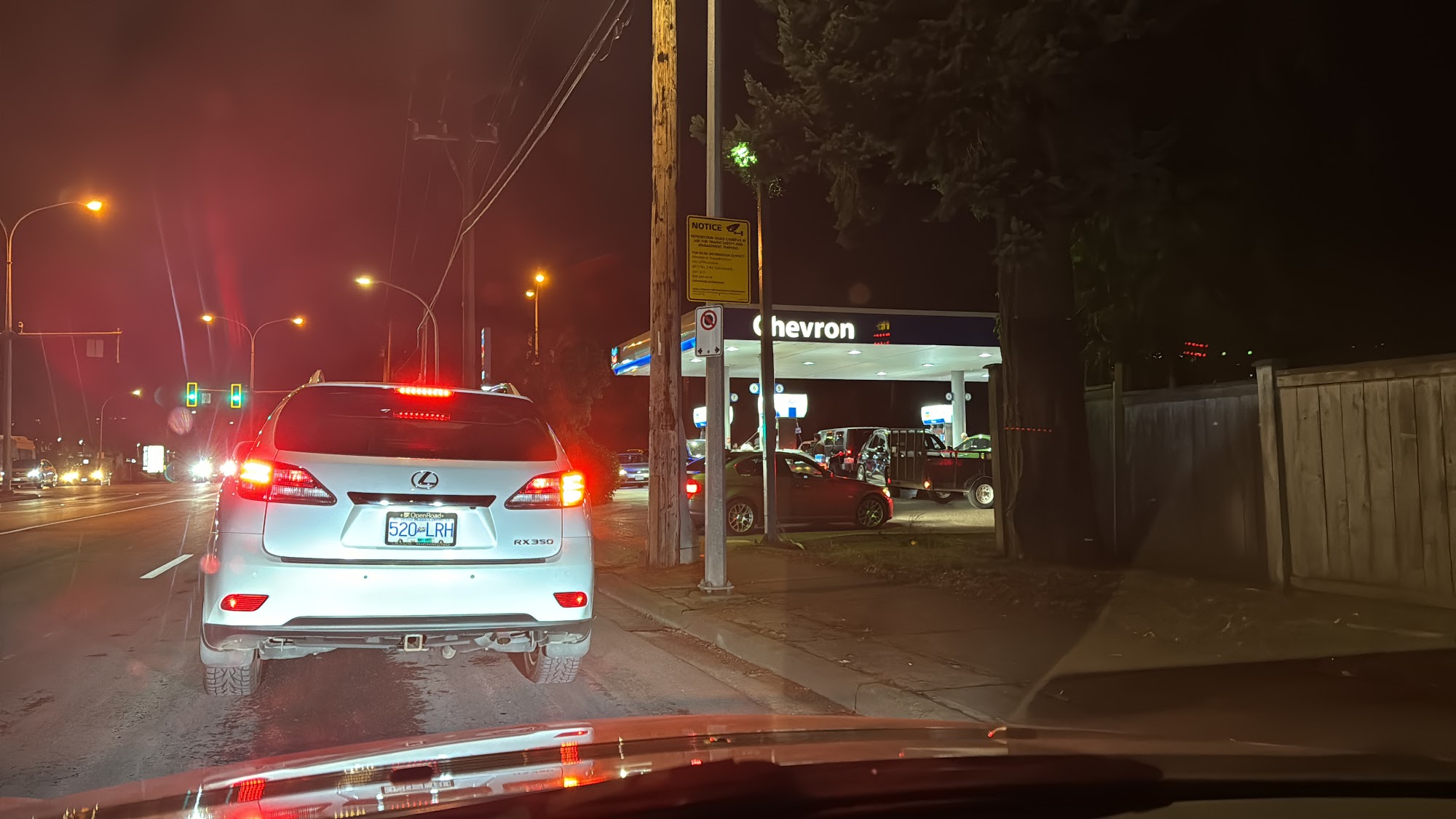Very busy at night. Cars are on the road lining up, blocking other cars to drive.