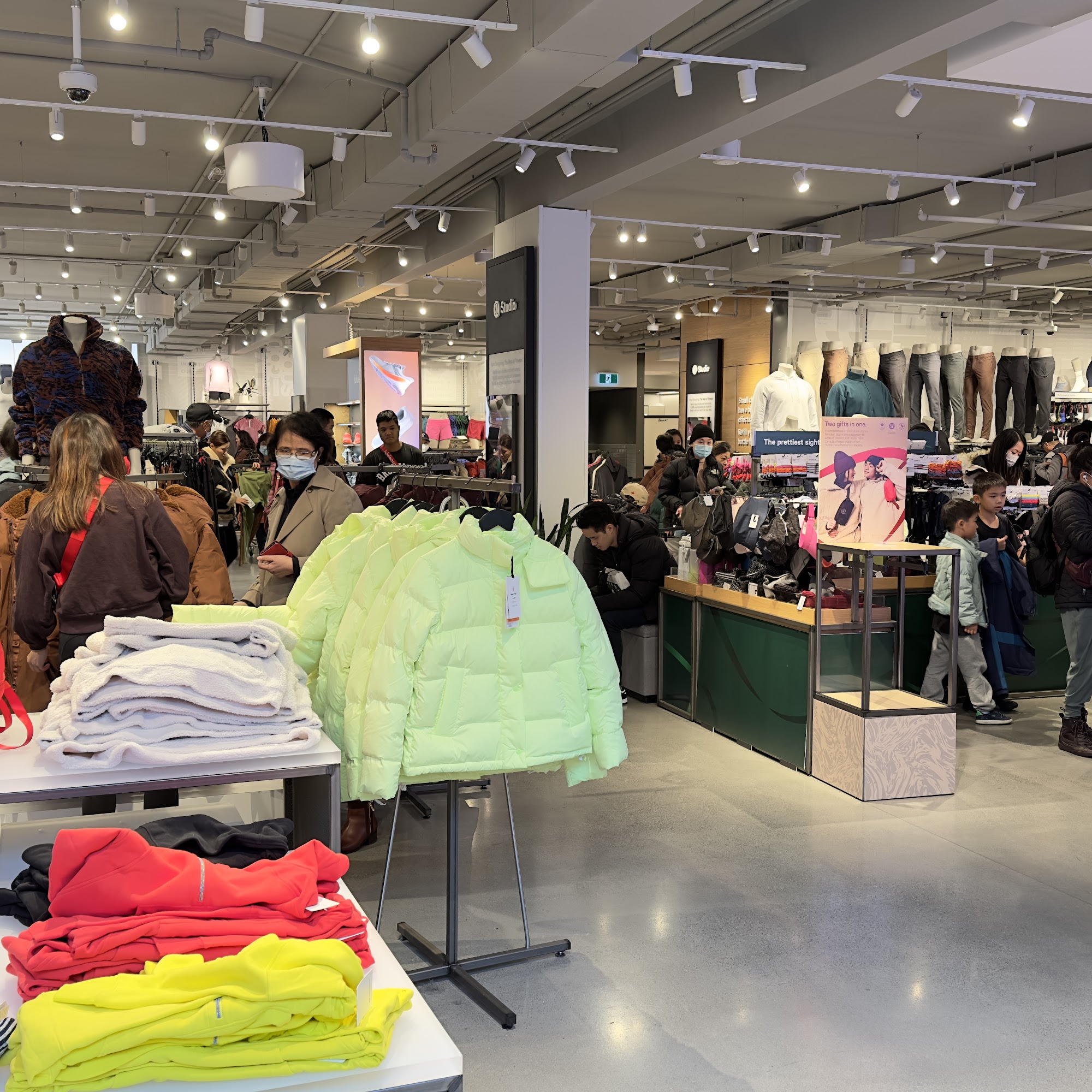 Purchased a pair of leggings that were on sale today. The whole shopping experience was pleasant. I find this location to be well stocked and frequent this location the most out of Metrotown or downtown. I was quickly assisted to a dressing room with no wait time and the SA checked on me once.