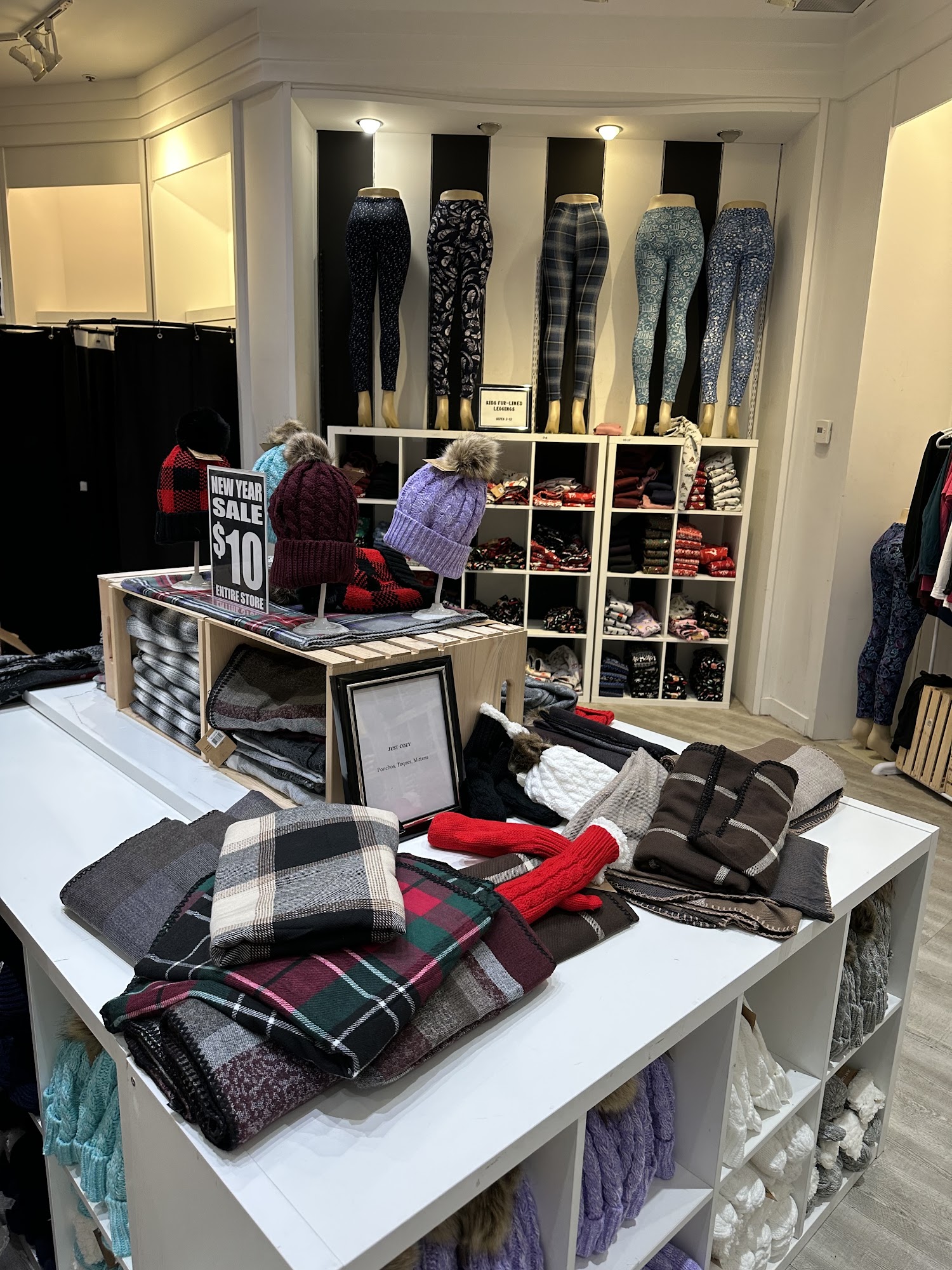 Just Cozy offers a positive shopping experience with great customer service and a clean environment. Customers find the products to be affordable and of good quality, especially enjoying the comfortable leggings and cozy clothing. Staff members, like Julie, are praised for their friendly attitude and efficiency, even during busy sales. The store's products, such as fuzzy-inside leggings, are highly recommended for their comfort and versatility year-round. Whether shopping in-store or online, customers appreciate the affordable prices, quality, and friendly service that make Just Cozy a favorite for cozy, stylish clothing.
