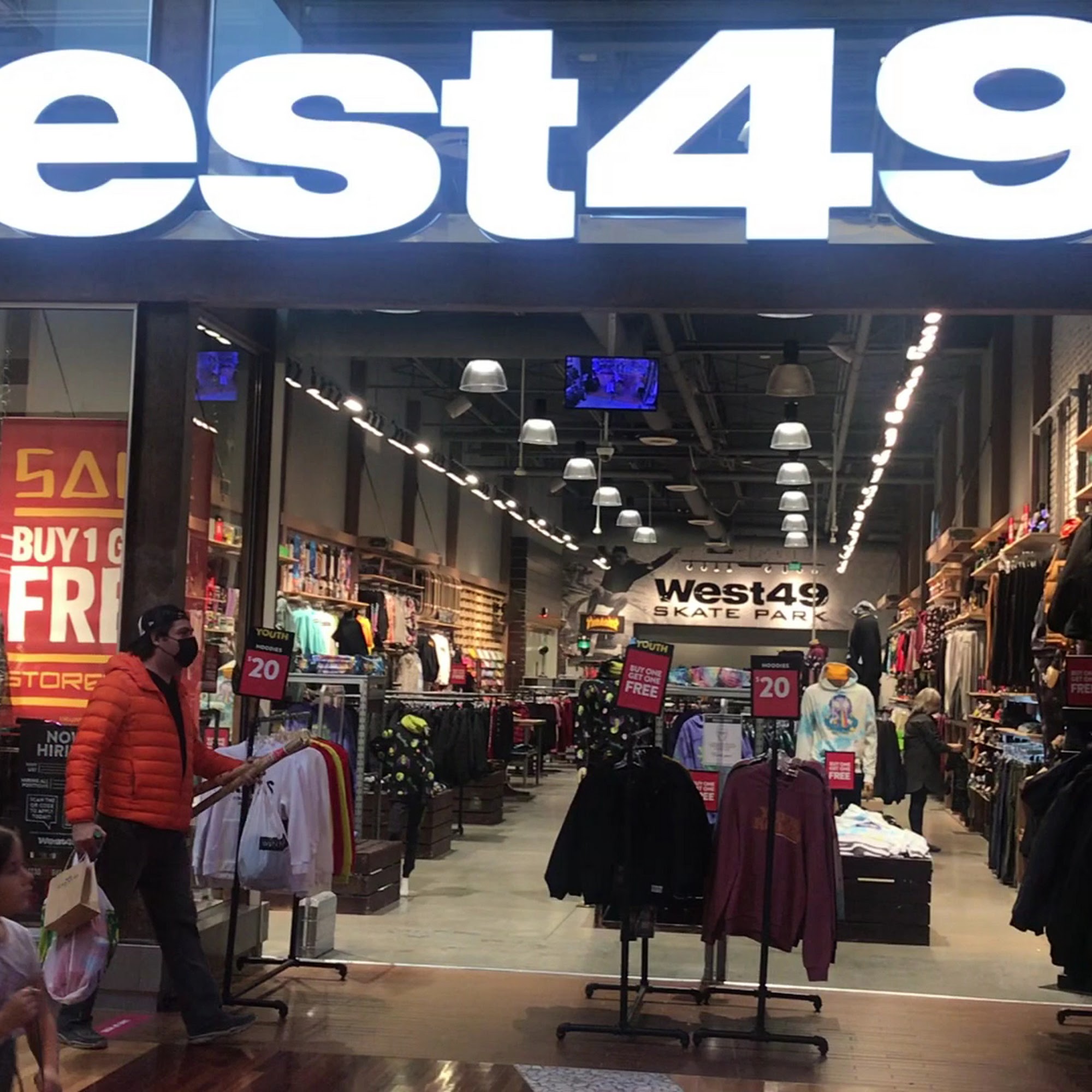 West 49 is a unique retail destination that combines a skate shop with an indoor skatepark, making it a great spot for both skaters and those looking for stylish apparel. The store is well-organized and features an impressive selection of skate gear, including boards, trucks, skate wear, and safety equipment. Customers appreciate the friendly and knowledgeable staff, who provide excellent customer service and help shoppers find exactly what they need. The indoor skatepark is a popular attraction, especially on rainy days, and offers a fun space for skating. While some visitors have noted that the surface can be slippery for scooters, the park is a great option for both casual skaters and those celebrating special occasions with birthday parties. With reasonable prices for drop-ins and rentals, West 49 is a worthwhile stop in the mall, providing a blend of practical activity and retail experience. Although custom skateboards are no longer offered, the overall vibe and offerings make West 49 a recommended destination for anyone interested in skate culture.