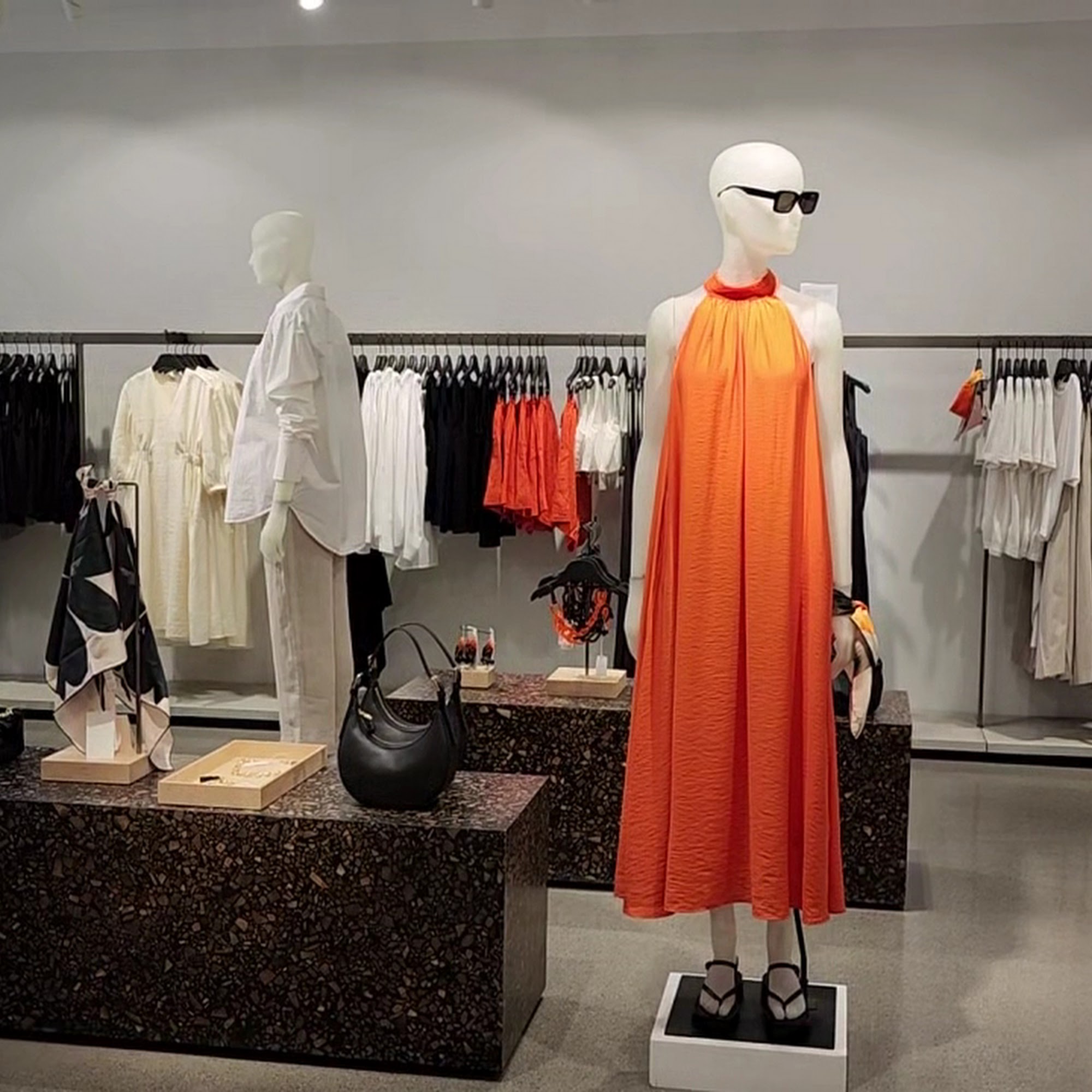 This is a nice clothing store with a subtle, but elegant style. The layout is very open, modern, clean, and comfortable.
