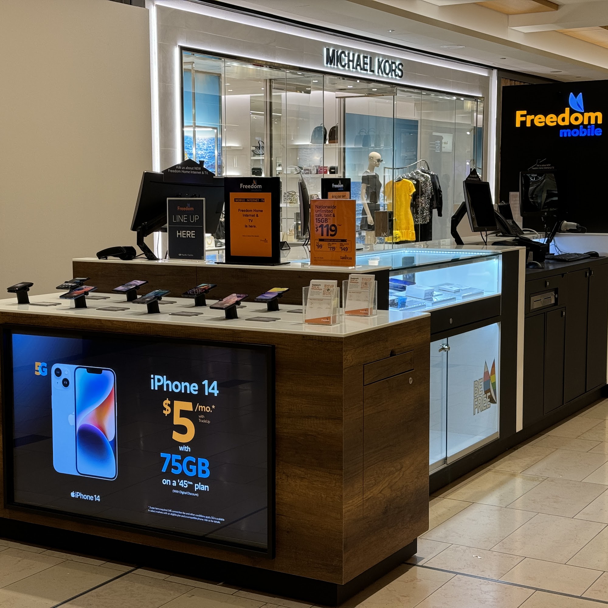 Freedom Mobile is highly praised for its exceptional customer service, particularly at its Pacific Center Mall location in Vancouver. Customers consistently mention the friendly and professional assistance they receive from staff members like David and Freeman. Reviews highlight their dedication to helping customers, taking the time to listen to concerns, and providing thorough answers to questions. Many customers feel valued and appreciated, with one reviewer even stating that Freeman's kindness and professionalism made their experience special, leading them to purchase accessories from the store as well. Long-term customers express satisfaction with the service since the company's days as WIND, noting that the staff is always ready to provide solutions to any problems. Overall, Freedom Mobile is recommended for its knowledgeable and personable representatives who ensure a smooth and enjoyable experience for all phone-related needs.