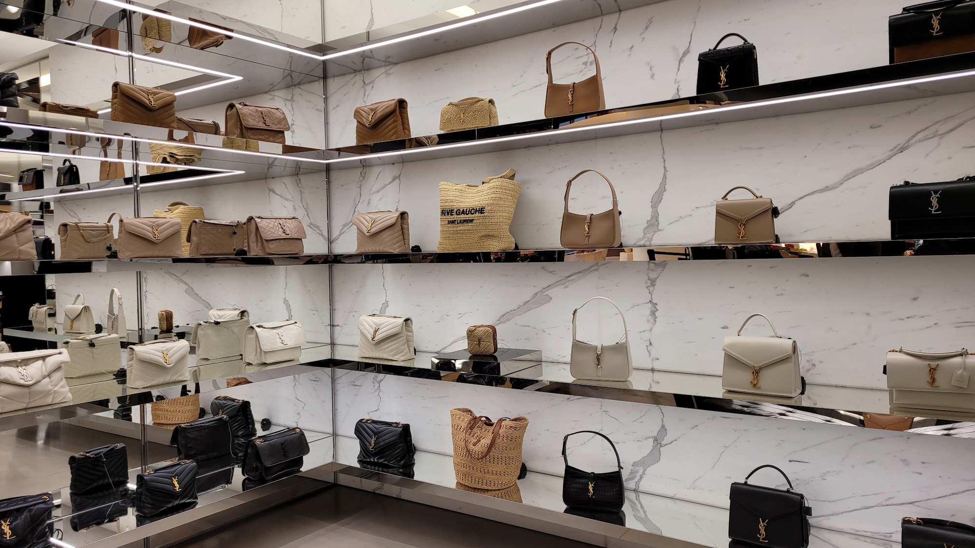Saint Laurent provides a welcoming and friendly atmosphere with attentive staff. The sales associates are professional, helpful, and patient, offering outstanding expertise without making customers feel rushed. They show multiple options and are genuinely friendly, ensuring a great shopping experience where purchases exceed expectations. The store also offers excellent repair services, with staff going above and beyond to resolve issues, including exchanging items. The displays and collection are loved by customers. Overall, the service is wonderful and the team provides amazing, hospitable care, making it a store customers plan to return to.