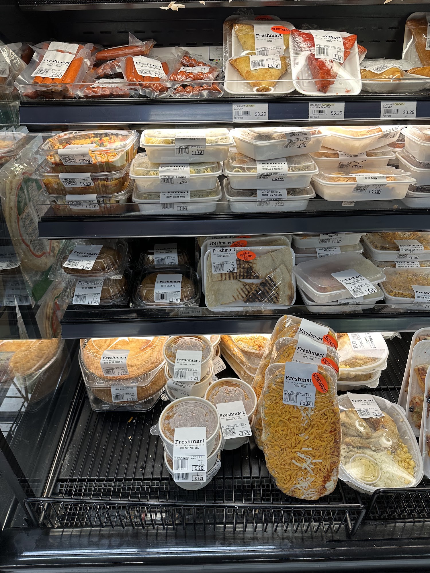 Vancouver Fresh Mart has a pleasant grocery shopping experience with clean good service and quick checkout. The store has quality produce, lots of ready made foods and meals, and lots of speciality and international items. Prices are good and the ready to eat meals are good and certain items be a little bit expensive. The store has 24 hour and has free underground parking and even has an ATM with cash back on debit. Friendly helpful folks are always there to point you in the right direction.