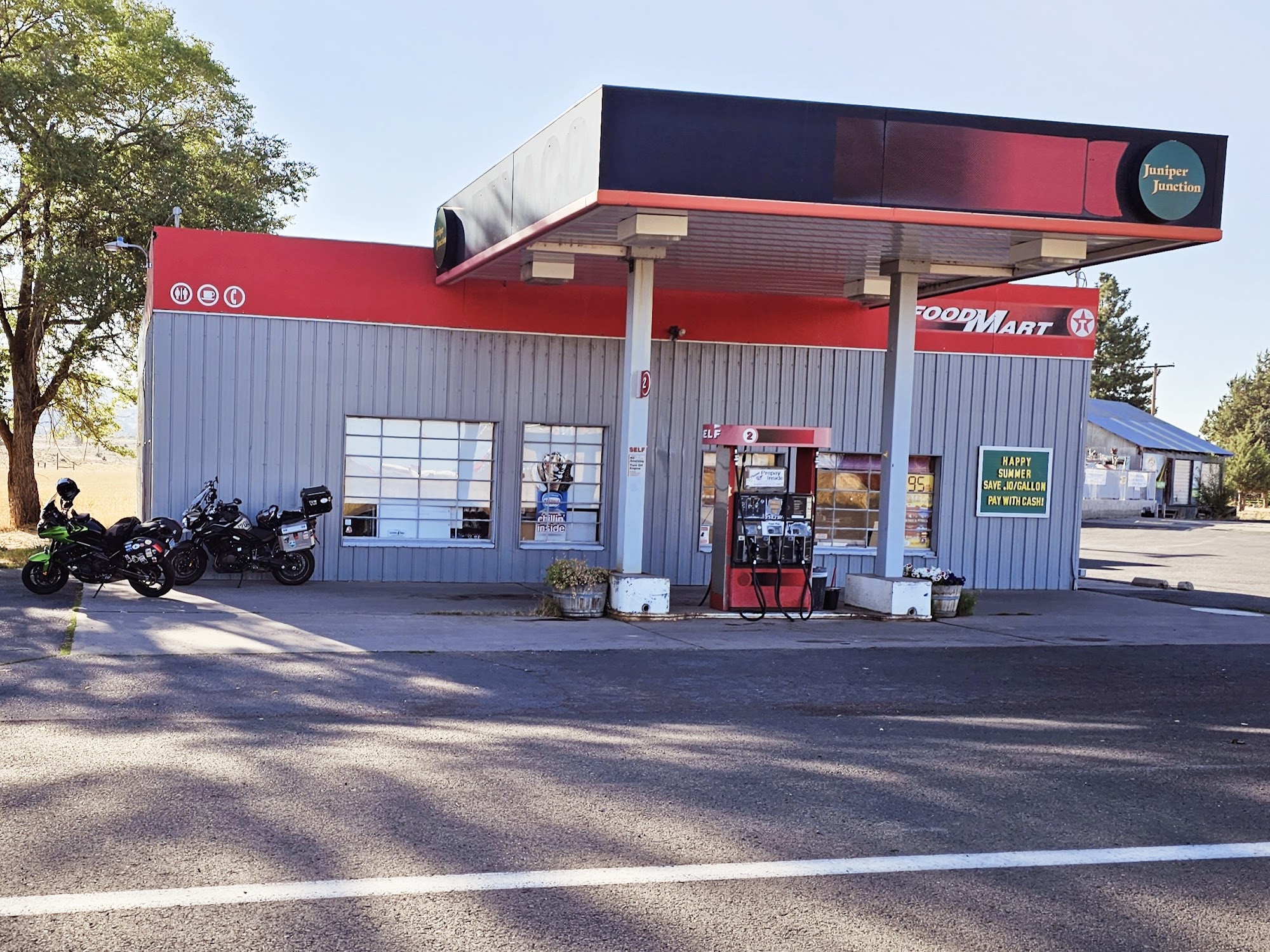 Juniper Junction, a rural gas station, offers a mix of experiences for its customers. The staff is described as friendly and upbeat, providing great customer service. Customers can find affordable jerky and may even purchase a humorous baseball cap with the quote "My Dog & I..." displayed. While the station's appearance may be that of a "hole in the wall," the fuel prices are not overly expensive, even by California standards. Interestingly, some customers have reported getting better fuel mileage when using Juniper Junction's fuel compared to other stops on long trips. However, the station's equipment, such as the fuel pumps, is outdated and could use an upgrade. Overall, Juniper Junction seems to offer a unique and memorable experience, with friendly staff, affordable products, and potentially better-performing fuel, despite its dated appearance and equipment.