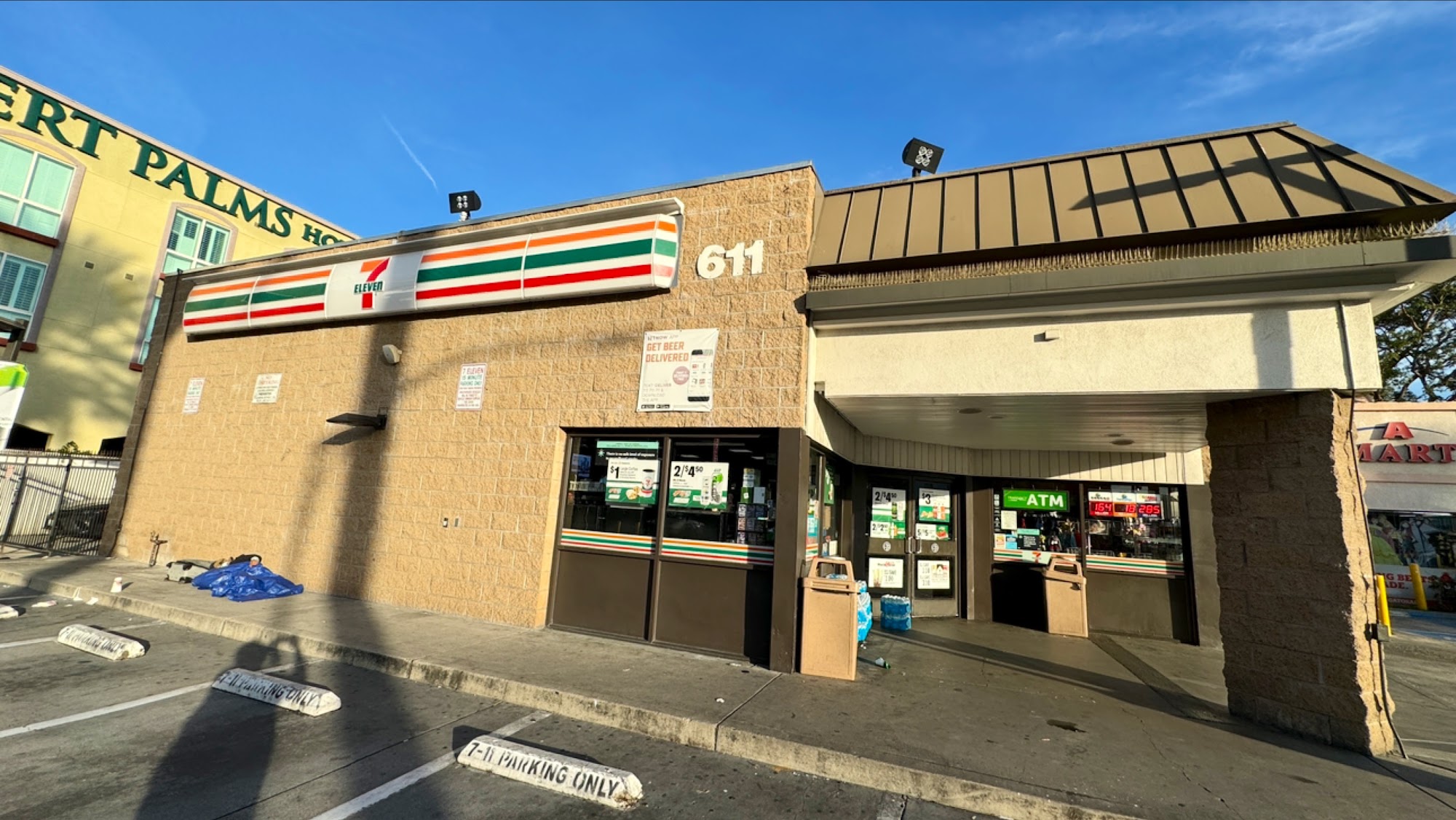 This 7-Eleven is located on West Katella Avenue in Anaheim, conveniently close to the Disneyland Resort and the Convention Center. It is described as a very well-stocked, high-volume store. Customers find it a good location to get snacks and goodies, noting it carries some Disney-themed items. The store offers a broad selection of products, including custom-made coffee at self-serve stations, Slurpees, hot foods like hotdogs, bread, instant noodles, and chicken skewers. Many acknowledge that prices here are higher than elsewhere, which is expected given its proximity to Disneyland. The service is consistently highlighted as good, with friendly employees. The store also has a cash machine. The area outside sometimes has homeless individuals or unusual characters, but this does not generally interfere with the store experience. It is a recommended, fast, and convenient spot for visitors needing meals, coffee, or snacks while on the go.