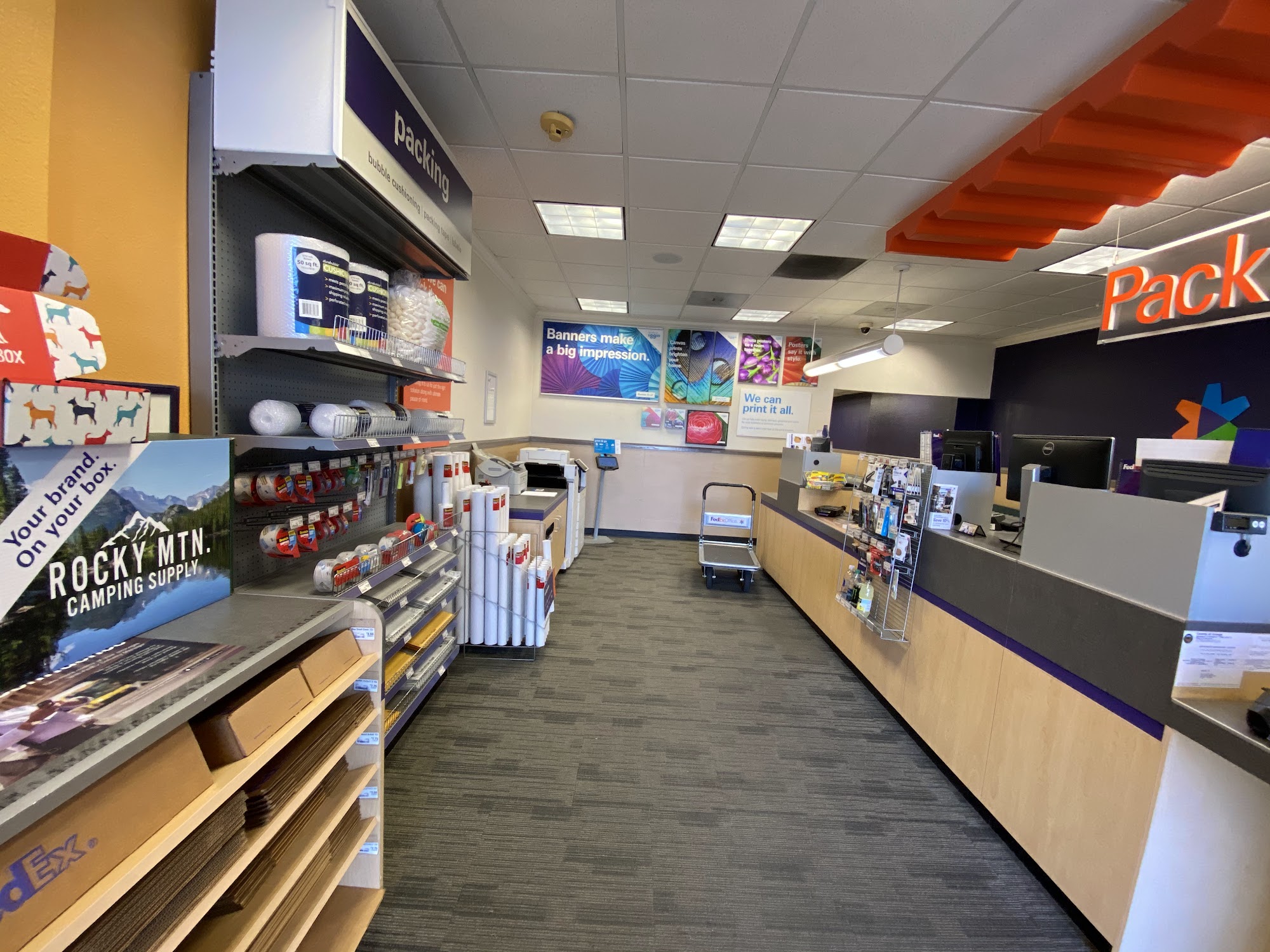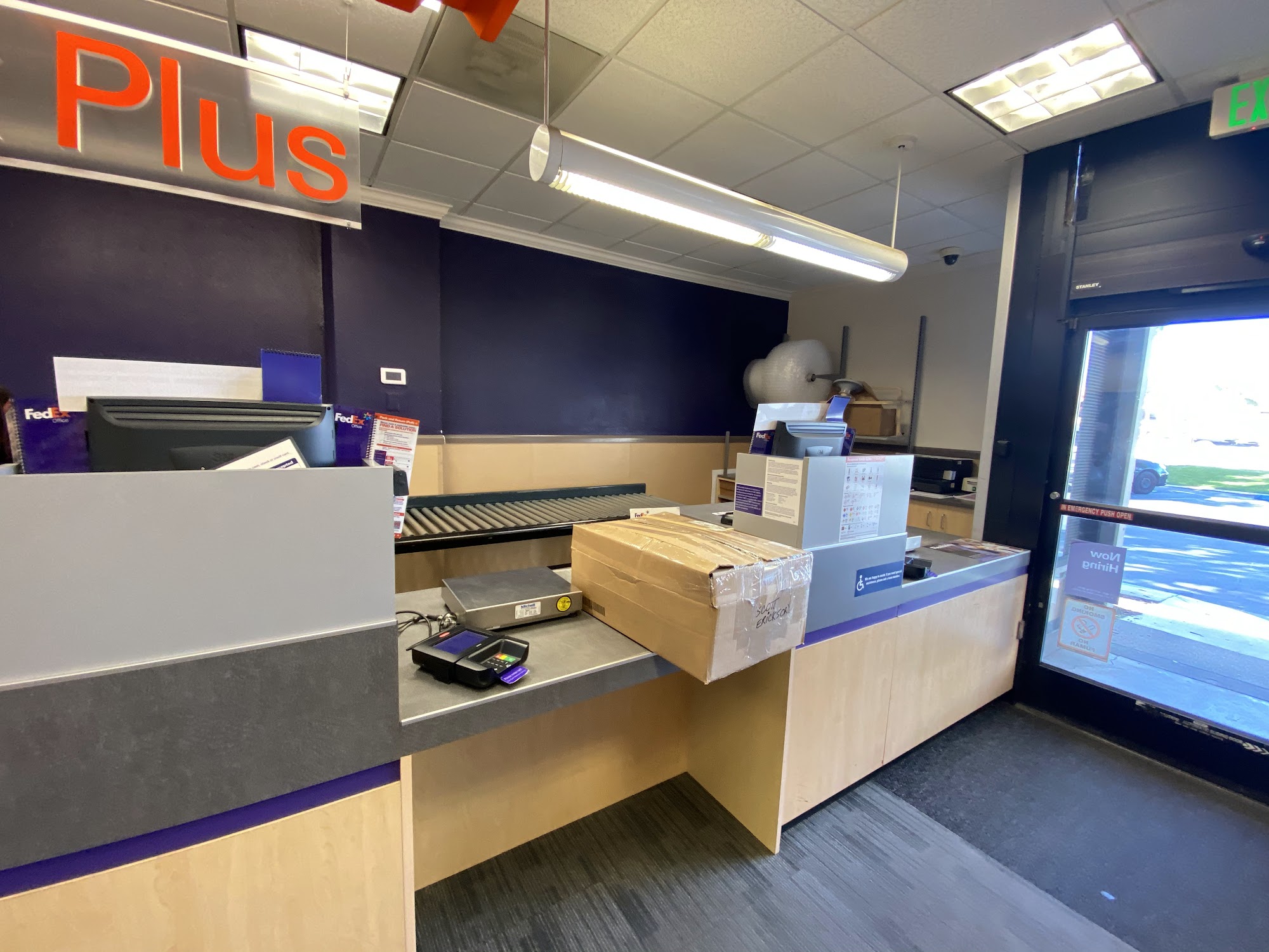 FedEx Office Ship Center is located in a business center, making it a somewhat hidden spot with plenty of parking. Customers report short wait times, often with no line. The staff is consistently described as very kind, super helpful, and friendly. Employees provide practical assistance, such as helping repack items into new boxes to meet a customer's budget and desired delivery date. They are also willing to handle heavy lifting for those who need it, using equipment like a hand truck to move numerous heavy boxes, and they carefully check packaging. The service is efficient for both pre-labeled drop-offs, with quick scanning and receipts provided, and for more complex shipping needs. The location also features an external FedEx drop-off box for convenience. Many customers highly recommend this location for FedEx services.
