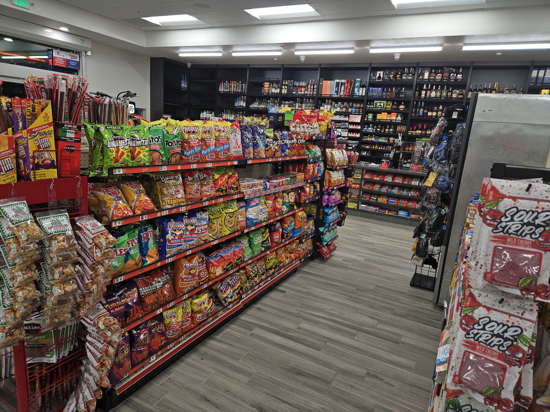 Clean and well-lit with a huge selection of drinks, snacks, beer, liquor, cigars, and even dairy products. They sell all Ca Lottery and Scratchers inside as well. All the employees are very nice and helpful. Great to have a quality shop on this side of town!
