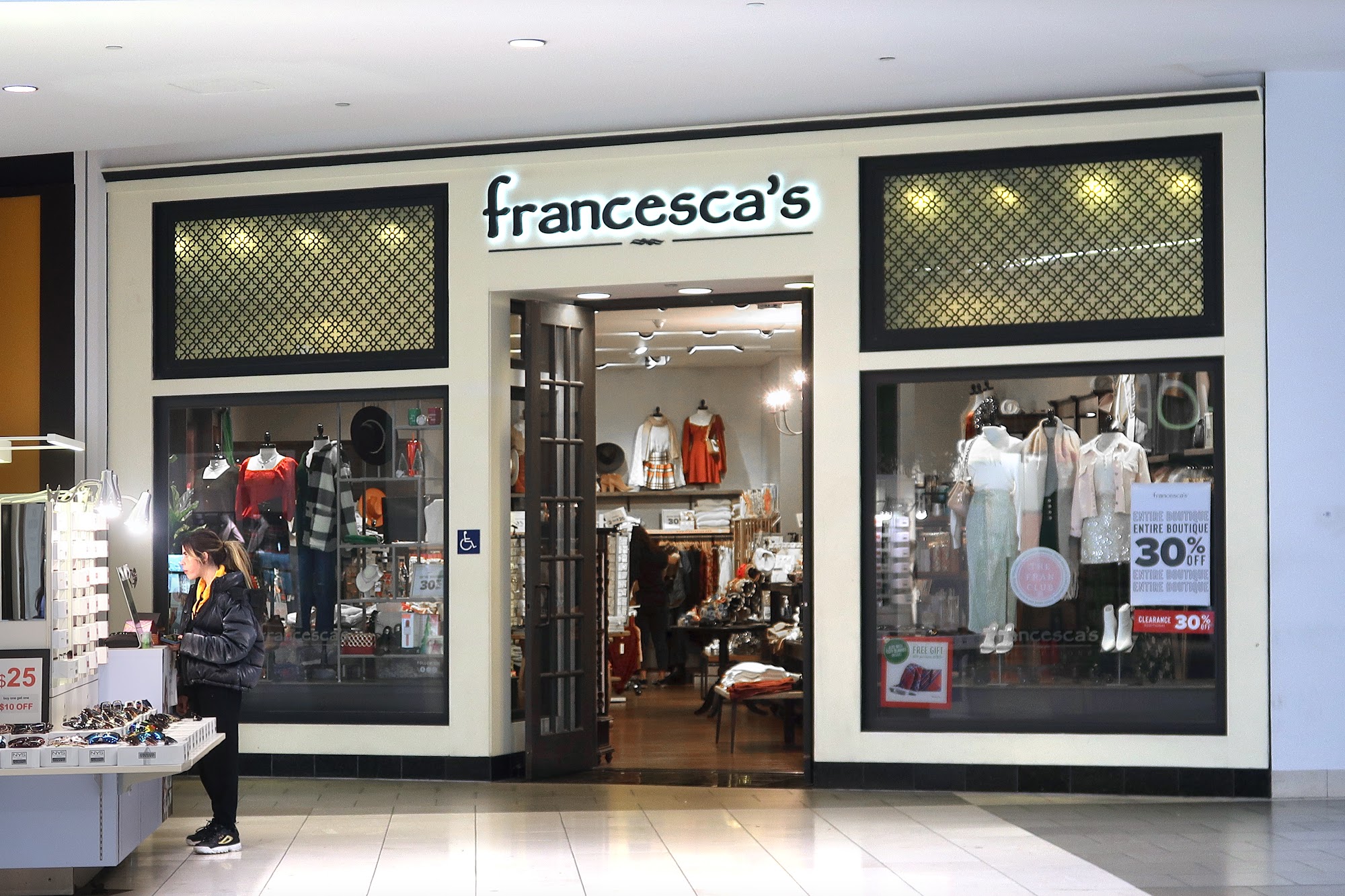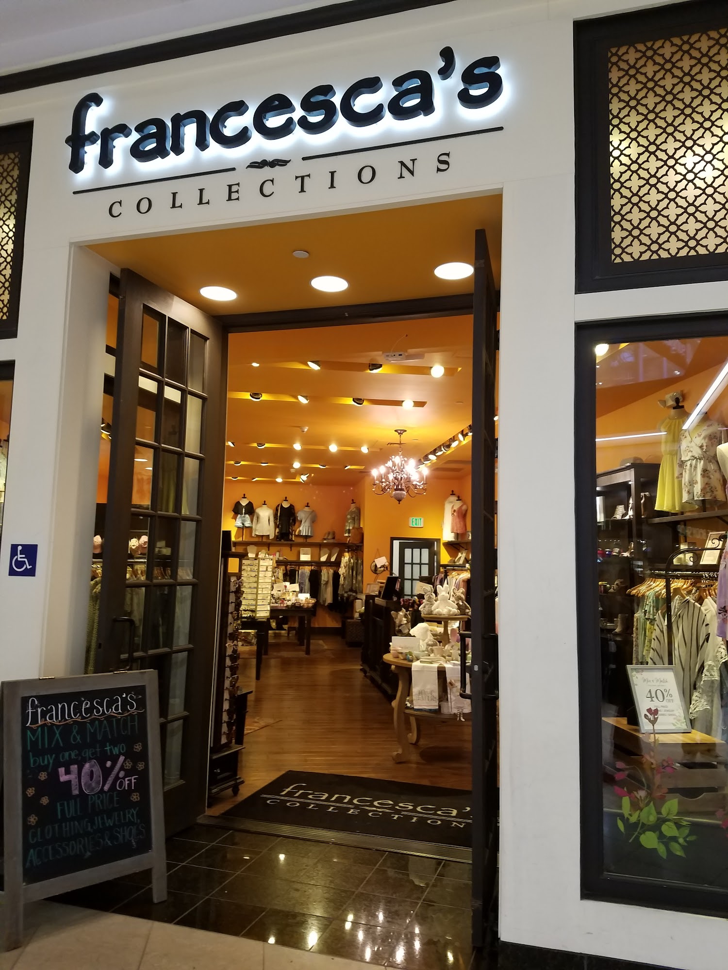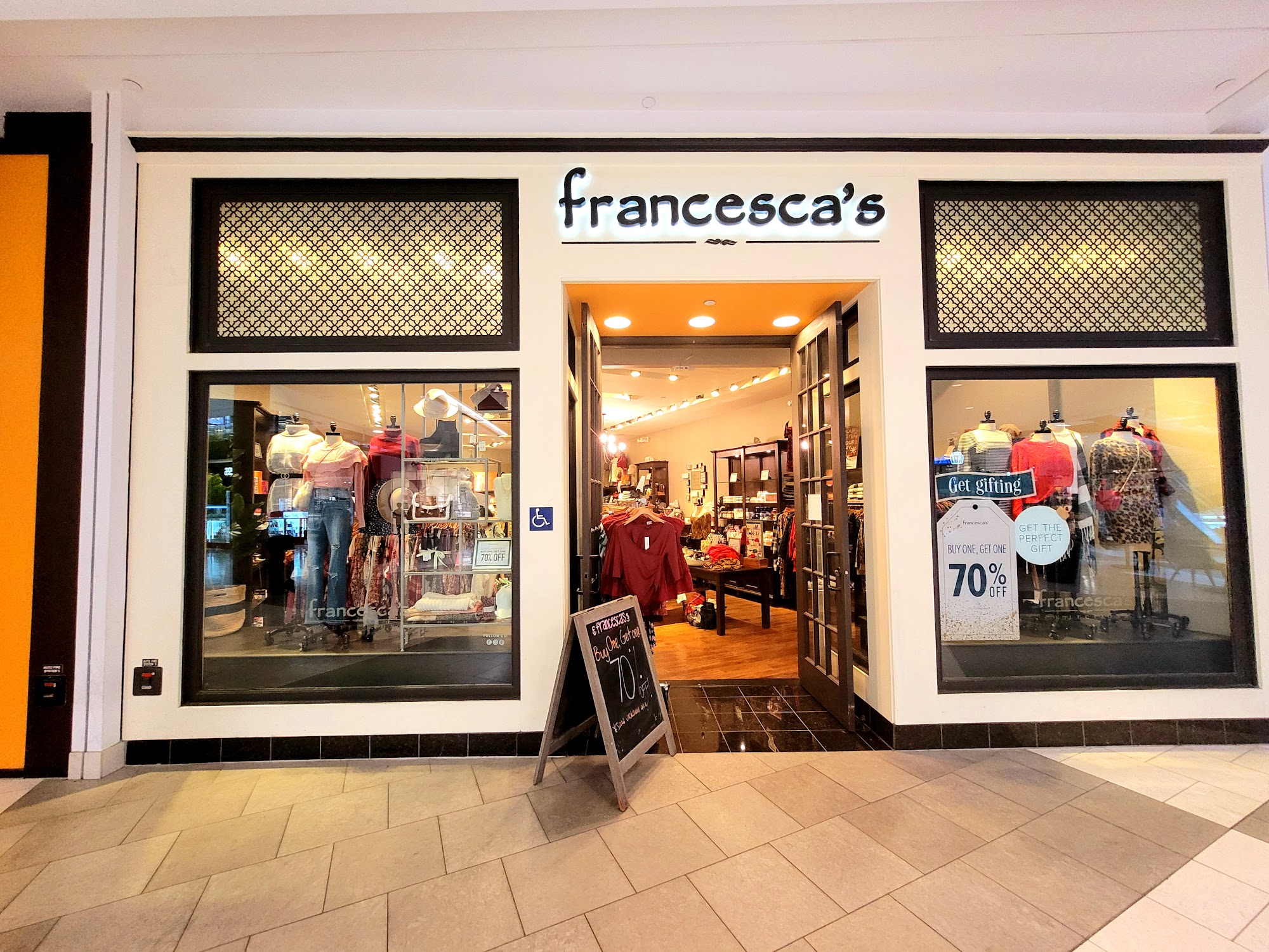 Francesca's is a charming boutique located in the Santa Anita mall, known for its beautiful dresses and trendy jewelry. Customers appreciate the aesthetic appeal of the store and the variety of stylish clothing available, perfect for gifts or personal outfits. The store offers a range of sizes from small to 3X large, though some sizes may be limited. Sales are frequent, making it easier for shoppers to find items within their budget. The staff, including helpful employees like Mia and Bellee, provide excellent customer service, enhancing the overall shopping experience. Many visitors highly recommend Francesca's for its fashionable selections and friendly atmosphere.