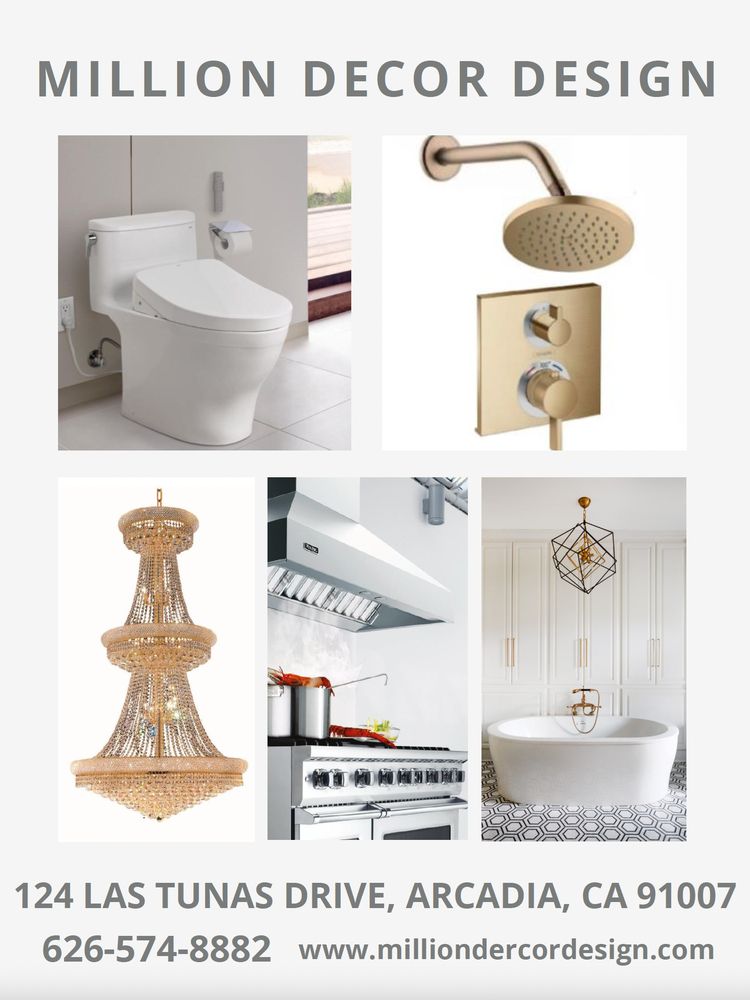 Million Decor Design is a full designer of kitchens and bathrooms with a showroom located in the heart of Arcadia. We offer luxury appliances from brands such as Toto, Axent, Grohe for plumbing, Schonbek, Corbett, Allegri for lighting, and Viking, Zephyr, Fulgor for appliances; plus many more! Check us out today to see how we can help upgrade your home!