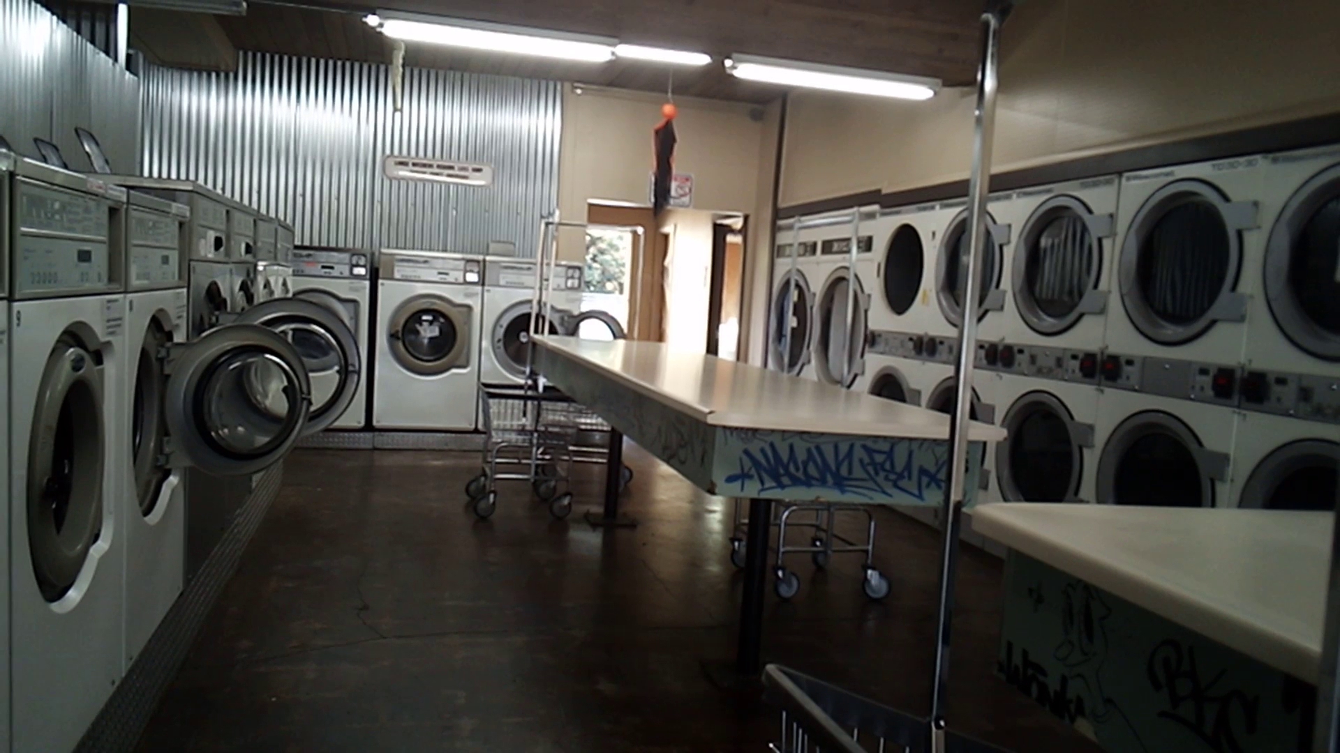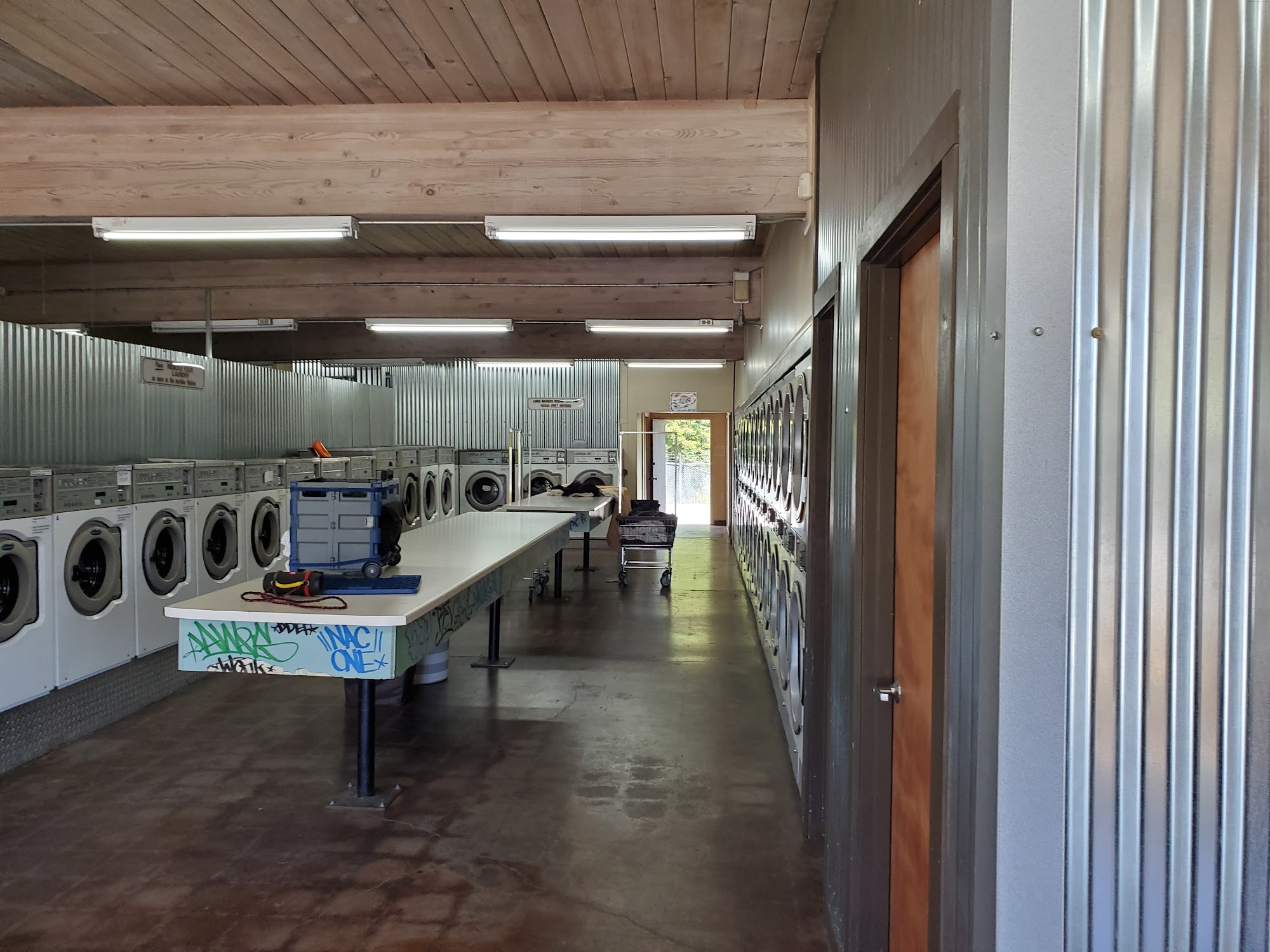 It seemed like half of the machines are out of order and luckily it wasn't busy when we were there so we were able to use the 2 large washing machines since we had bedding to wash ($15 each) and $5 for the large dryer. I think only 1 was working. Friendly attendant.