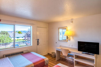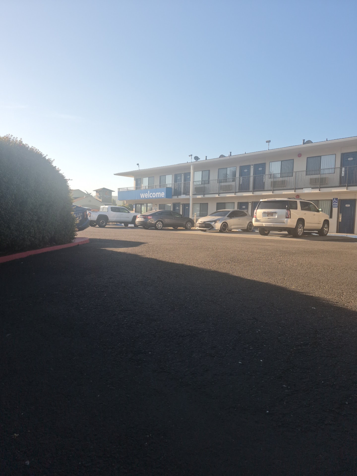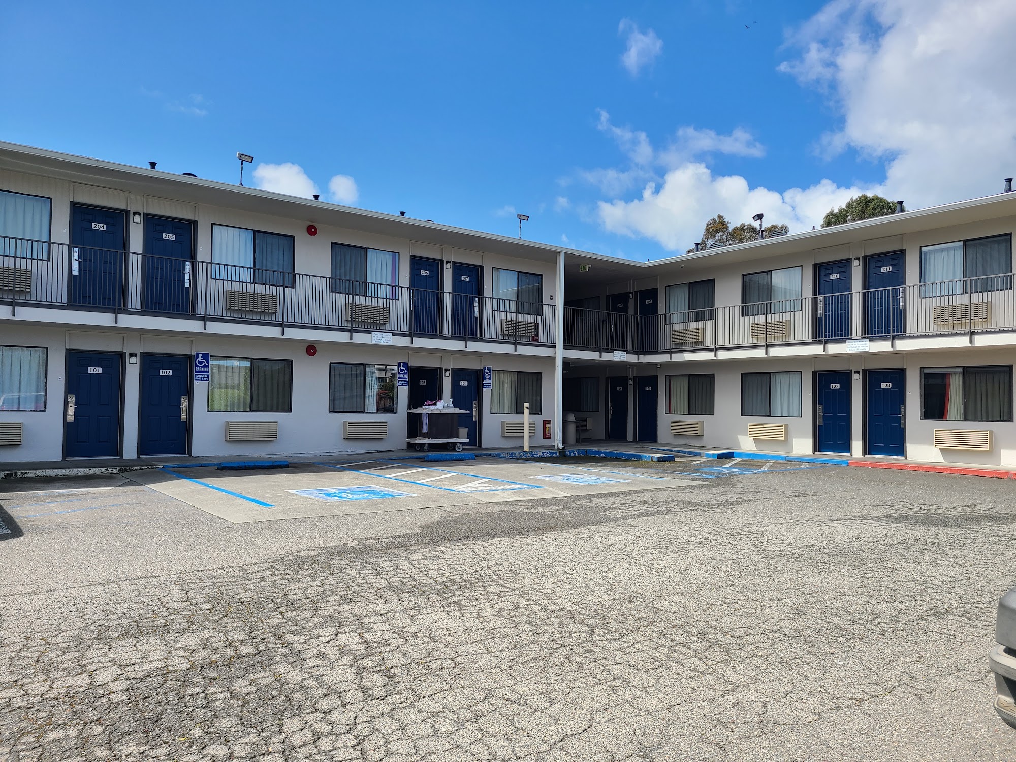 Motel 6 Arcata offers an inexpensive and solid experience with good value for the cost. The check-in process is automated and different, using a kiosk or virtual assistant for a remote, straightforward service that some find efficient but others find impersonal. The staff is noted as friendly, helpful, and competent. Rooms are clean, comfortable, and fair for the price, with decent beds and functioning AC, though furnishings can be slightly worn-out. Some rooms are small, especially with two beds. Issues noted include very small, cheap towels, bathroom floors coming up, shower leaks, and walls that are not completely soundproof. The location is convenient and close to restaurants and major roads, with free parking outside, though parking can be tight during area events. The surrounding outdoors are nice, but the immediate area has some safety concerns with people on drugs and homeless individuals, though the motel itself has security cameras and feels safe with doors locked. It is considered a good deal for an affordable, short stay.
