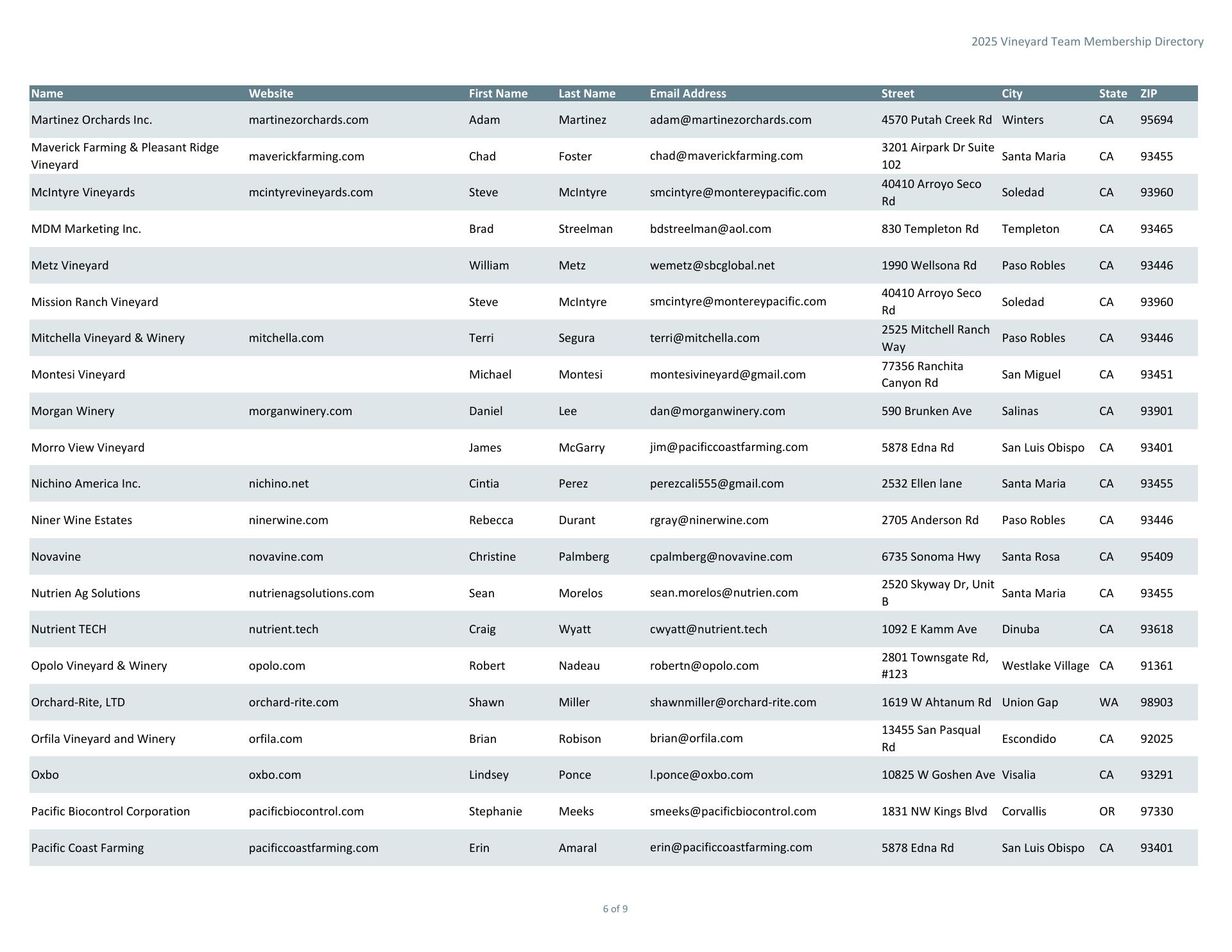 Vineyard Team