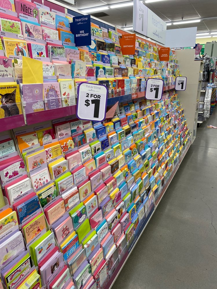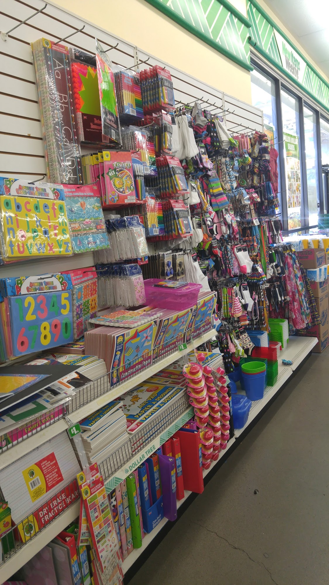 Dollar Tree is an okay place to run in and get some things. It is a good place for crafts, decorations, greeting cards, and plates without spending a lot of money. Many items are cheaper with the same quality as other stores. It offers things for students, office, home, car, beach, and groceries. The service is excellent and kind, with unbeatable prices. However, most food items are small, and the animal food is overpriced and generic. The store has a lot of interesting things and is useful for finding items in volume for events.