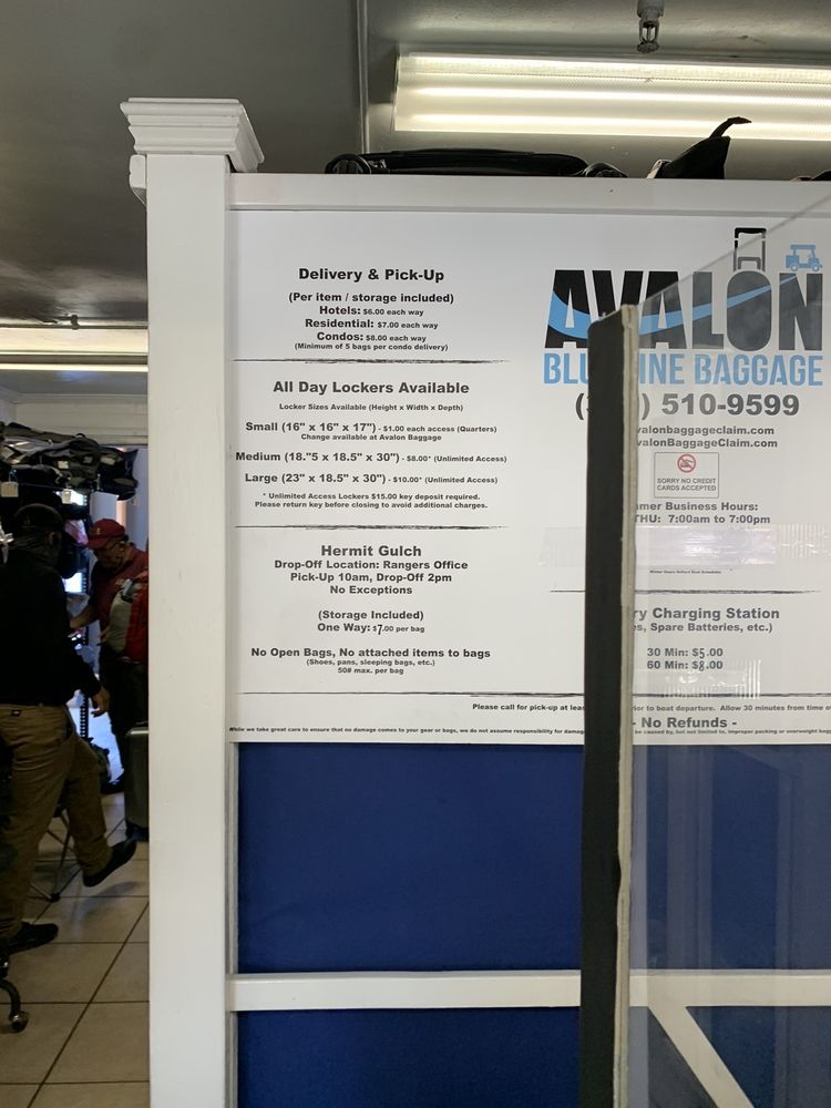 Avalon Blue Line Baggage is a highly convenient service on Catalina Island that makes travel easier and stress-free. Located right where you arrive on the island, it offers easy drop-off and pickup options, especially helpful if hotel check-in isn’t available early. Customers can drop their luggage before checking into their hotel or explore the island without carrying their bags. The service is known for its friendly staff and smooth process, including luggage pickup from hotels and safe storage at their terminal. The cost is about $8 per bag, paid in cash, and the service is praised as a life saver for travelers wanting to enjoy their last day without baggage worries. It’s important to note that only single-piece luggage is accepted, and larger or attached items like tents or sleeping bags may require extra fees or are not accepted. The location is very close to the ferry and boarding area, making it very convenient for travelers. Overall, Avalon Blue Line Baggage is a reliable and helpful option for managing luggage on Catalina Island.