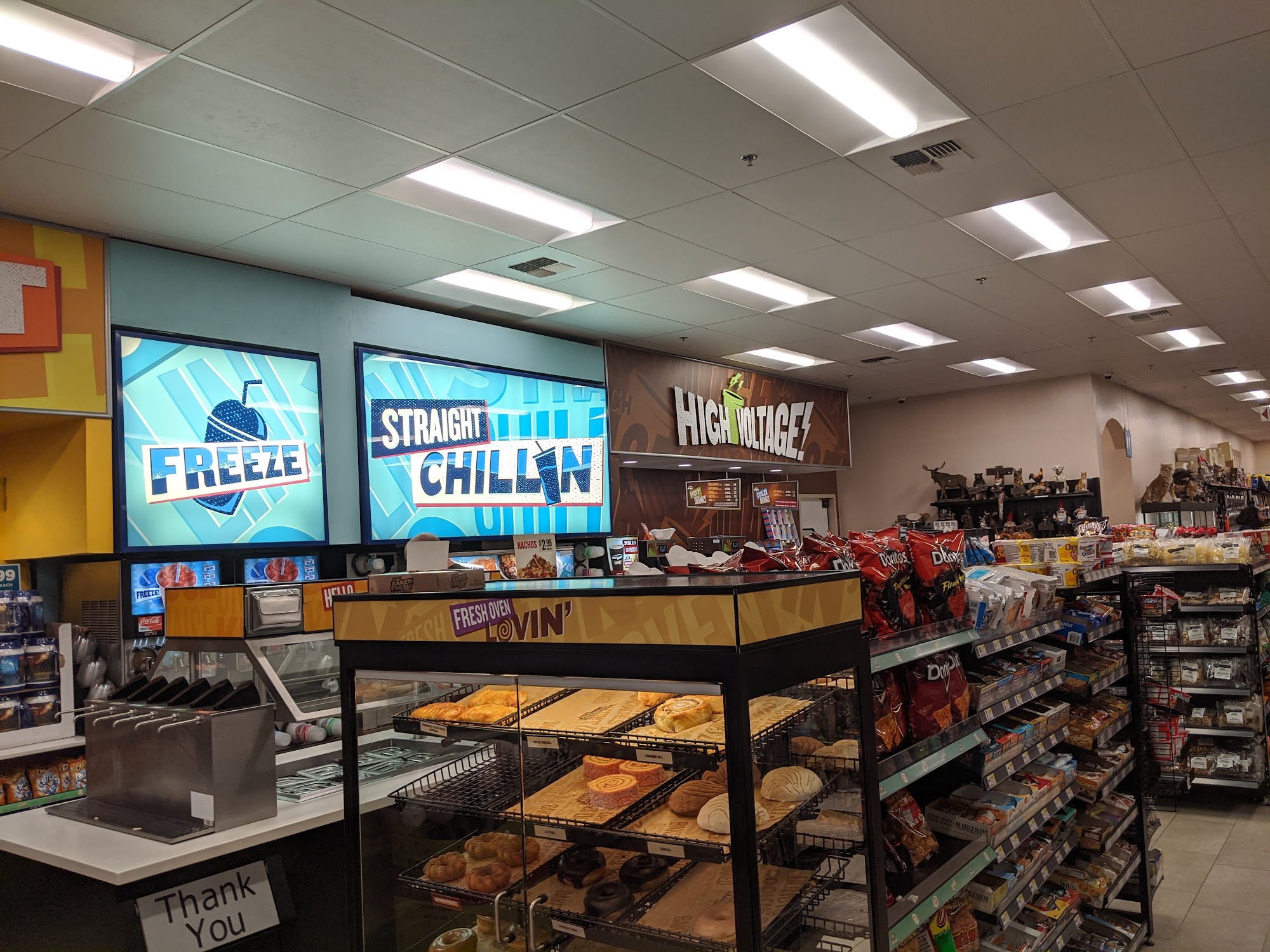 This is a pretty sick stop about two hours north of LA. The ampm had cool stuff like pro mask garden gnomes, crystal Jesus's and display cases filled with swords. The bathrooms are fine. Gas was super expensive though, I did not gas up here.