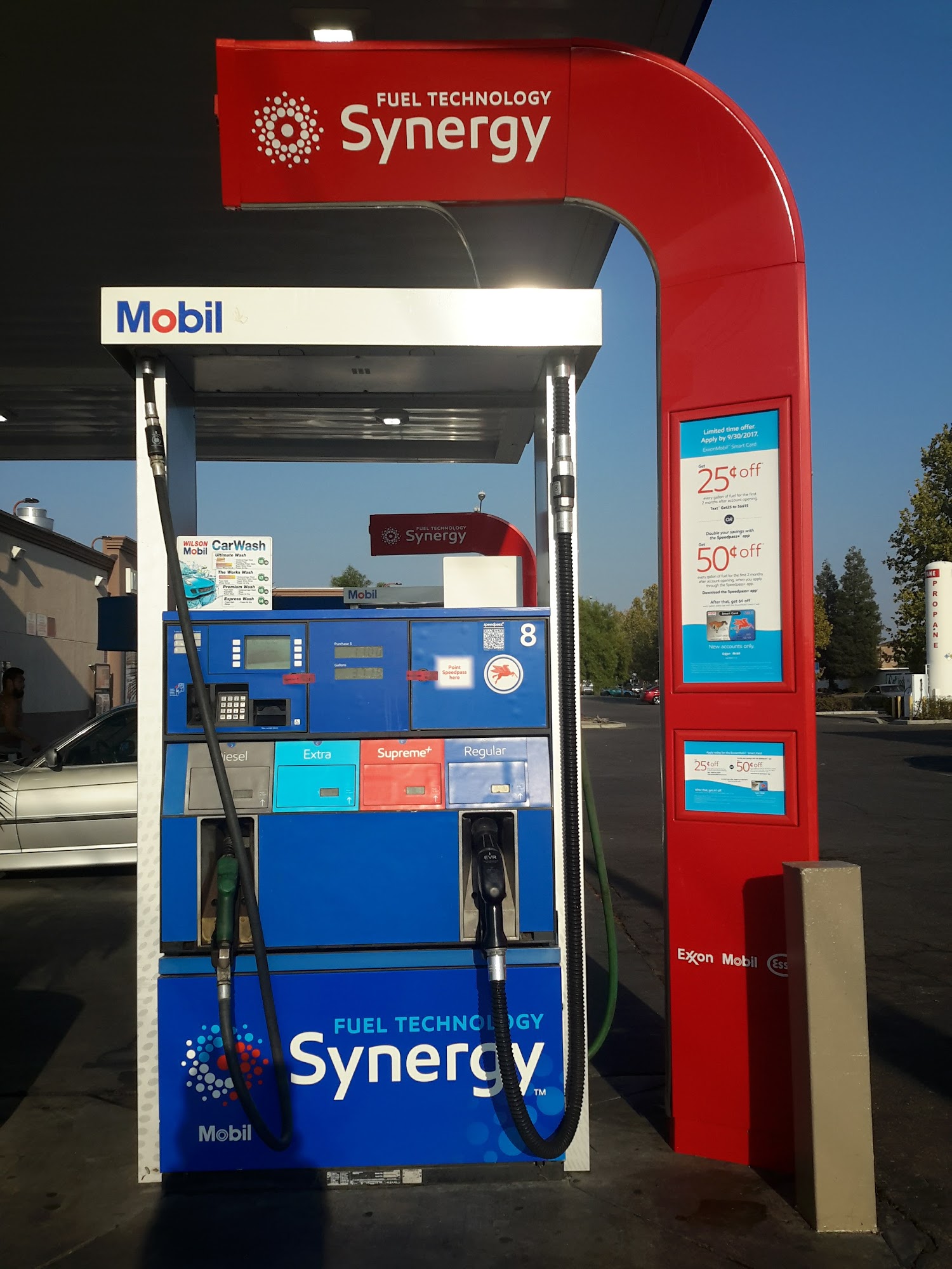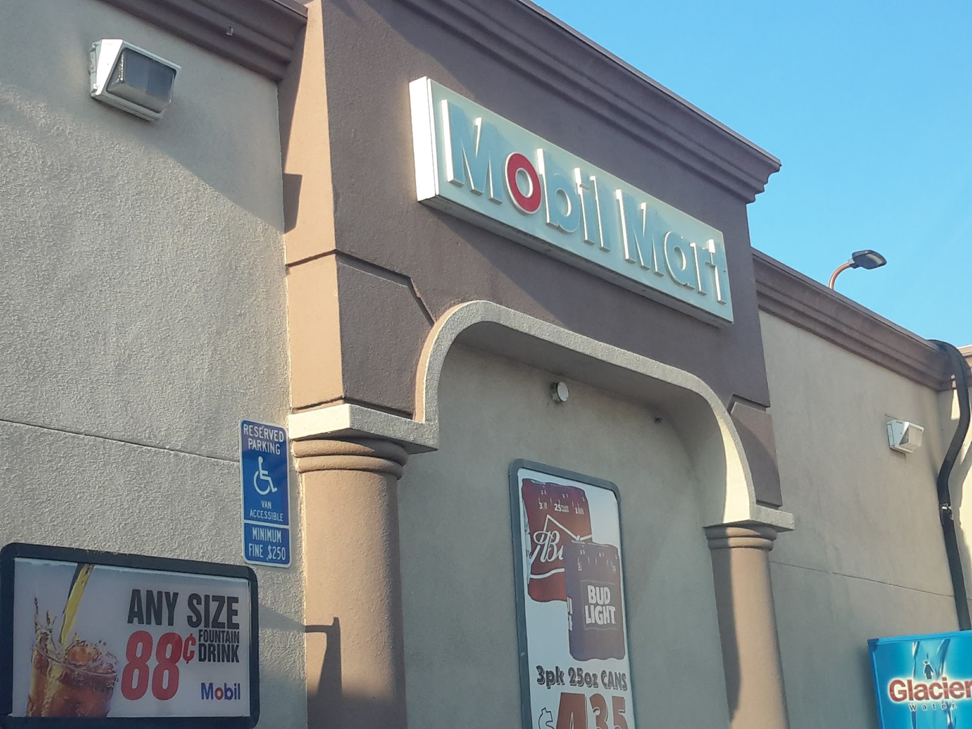 Mobil is an owner-operated station with nice staff. It has a great snack and hot food selection, including deep fried burritos, wedges, chicken, and fantastic locally made banana and zucchini bread. It is used by Amazon to fuel their trucks. The gas is not the cheapest, being just a couple of cents off. Customers should watch out when selecting fuel, as some pumps may not let you choose regular.