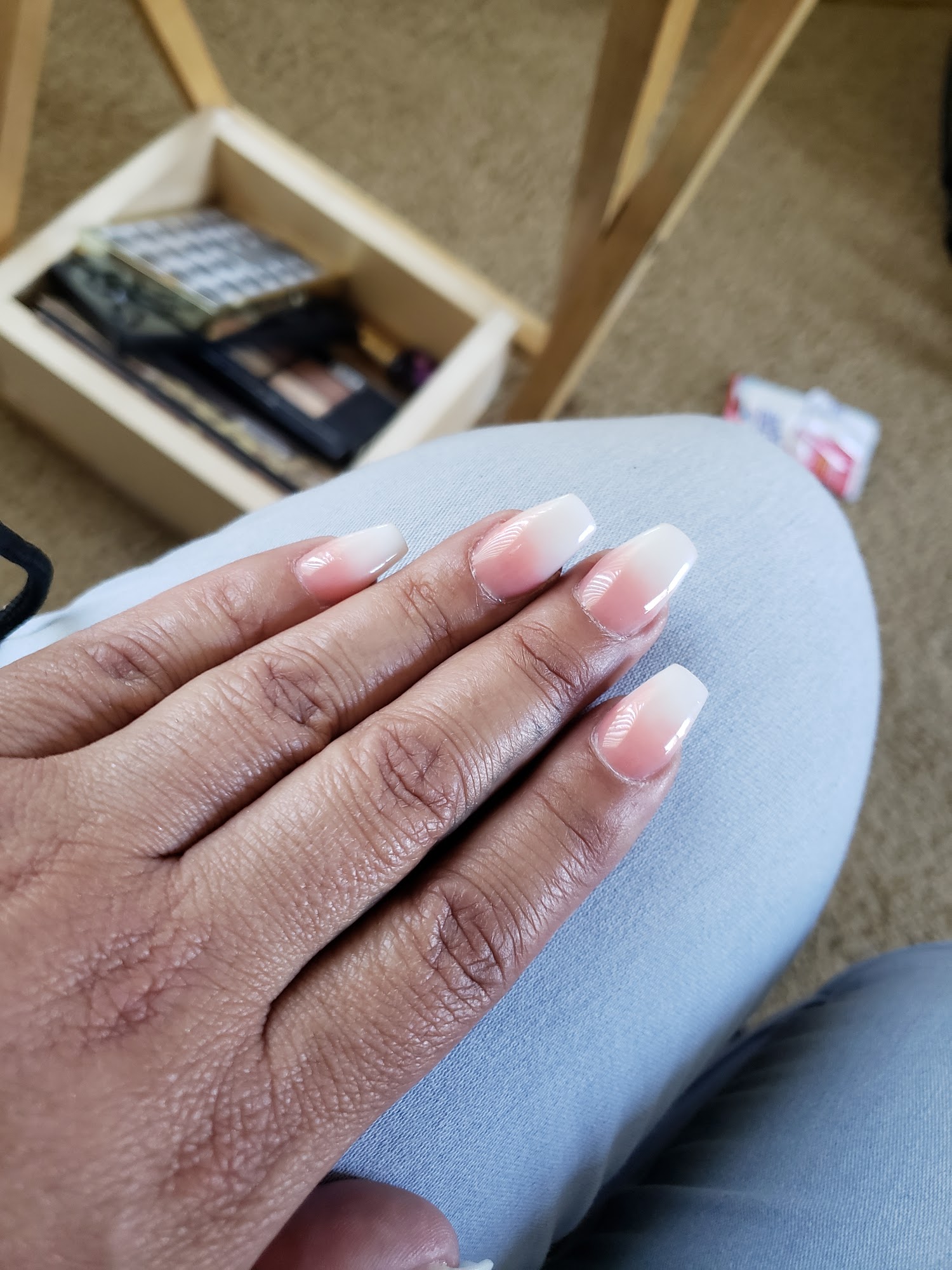 Decent prices on full set of acrylic nails. Reasonable at length for feel nails. Lady doesn't speak good English tho. But man is actually really good at pedicure. I normally get pink and whites it french tip and looks good! Hope to see you there!