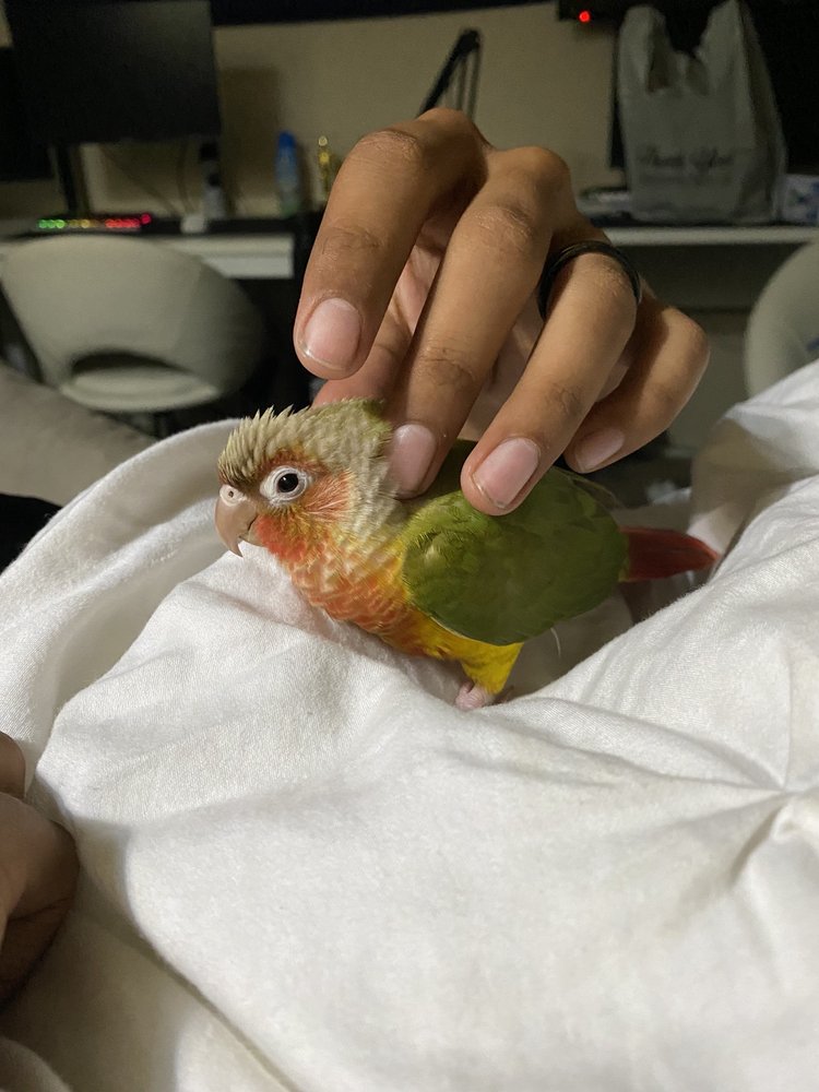First of all I want to Thank Sharon. She is such a sweet lady. I bought a sun conure 6 months ago. I am from seattle and my baby is sooo sweet and cute always wants to hang out with me and my husband and very healthy and happy baby he is.