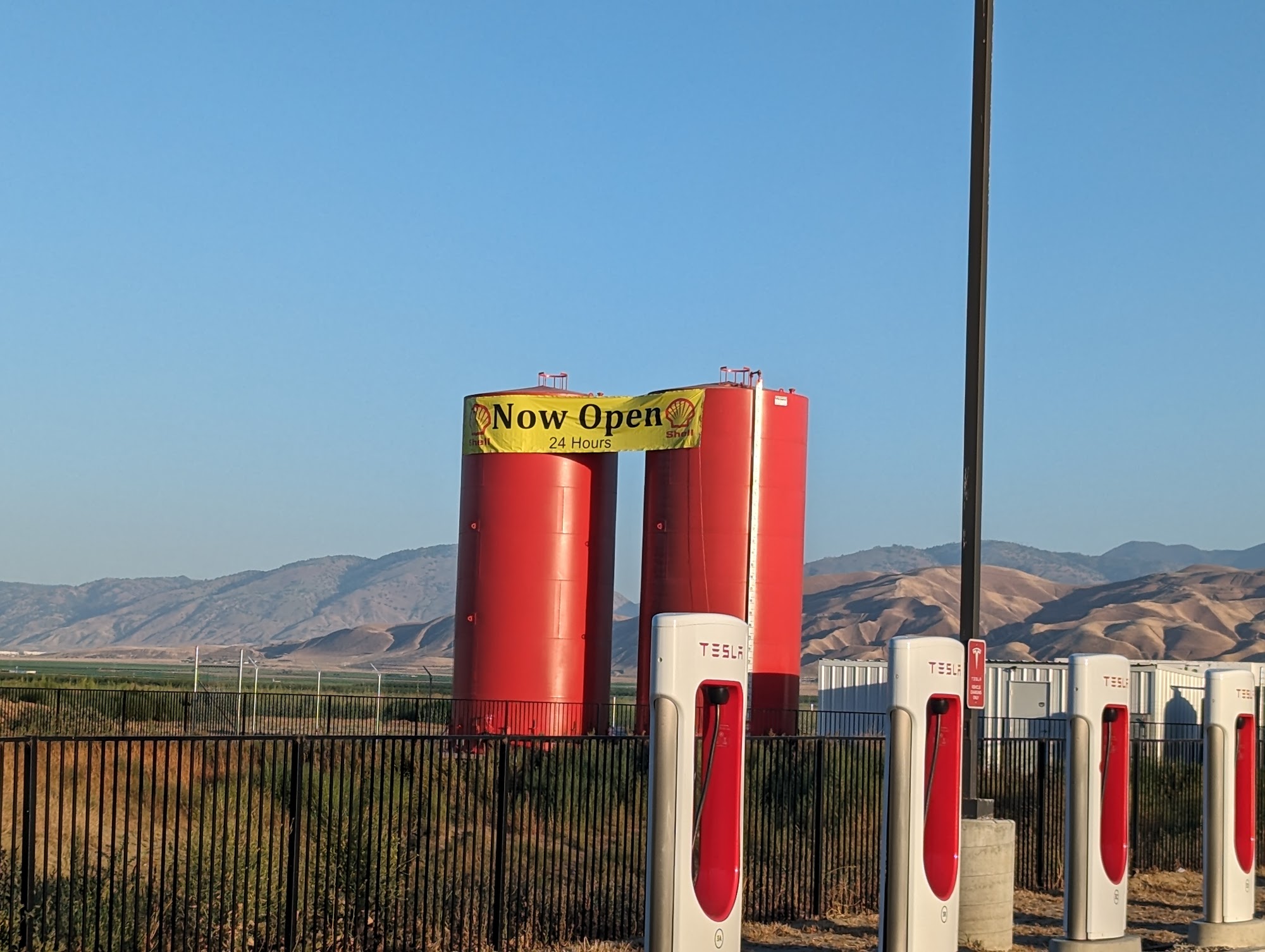 New supercharger location connected to a very large convenience store & gift shop. Not too busy here right off the 5 freeway on a holiday weekend. Interesting selection of asian/mexican international snacks and on-trend stuffies, much better than your typical roadside store.