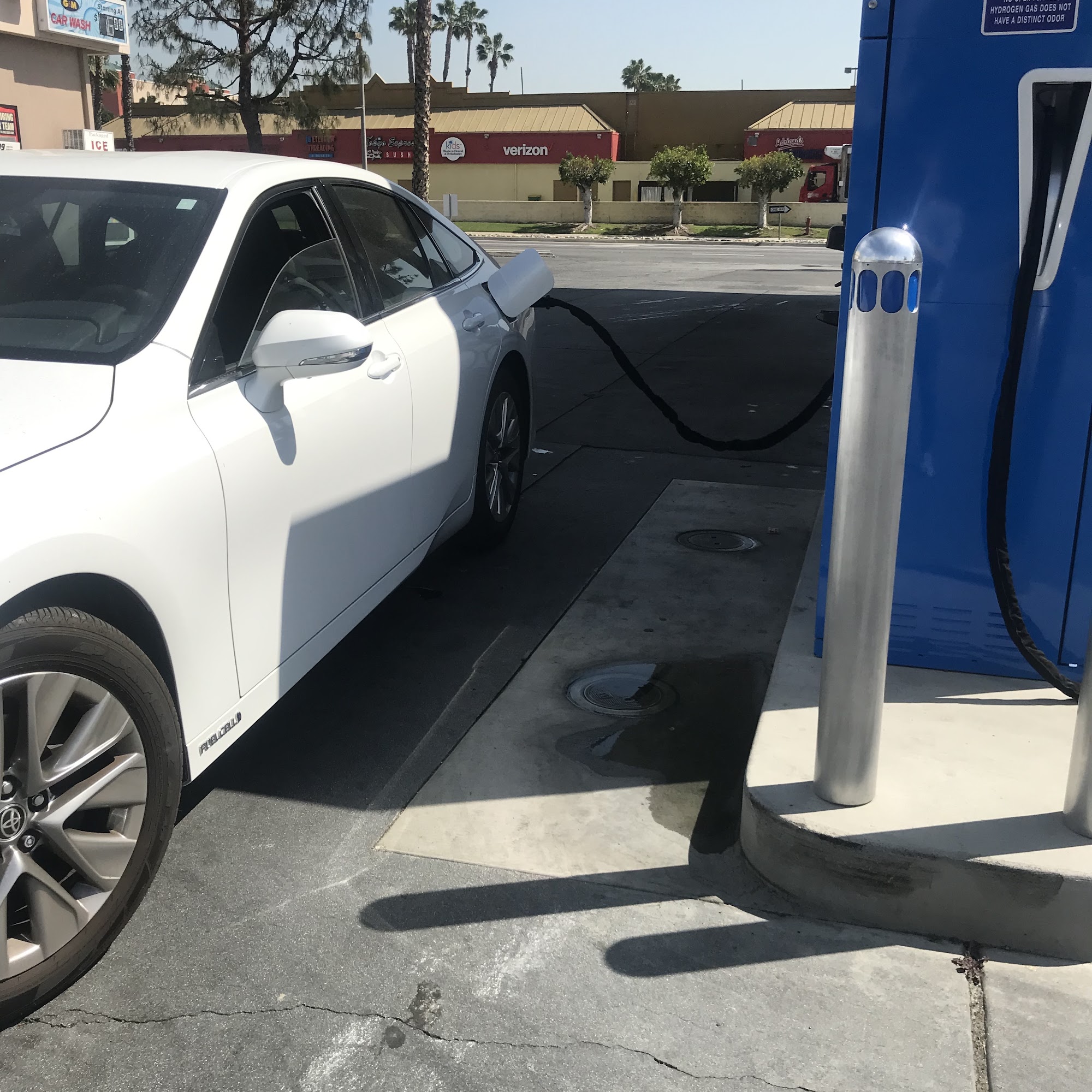 Chevron offers hydrogen fuel with four pumps and Tatsuno nozzles, providing low prices and reliable service. The station has clean windshield washing stations with good liquid, squeegees, and paper towels. However, the car wash experience is slow, taking around 45 minutes, which customers find inefficient. The car wash area has multiple vehicles, and the process could be faster. Overall, it is a convenient station for fuel and basic cleaning, but the car wash service leaves room for improvement.