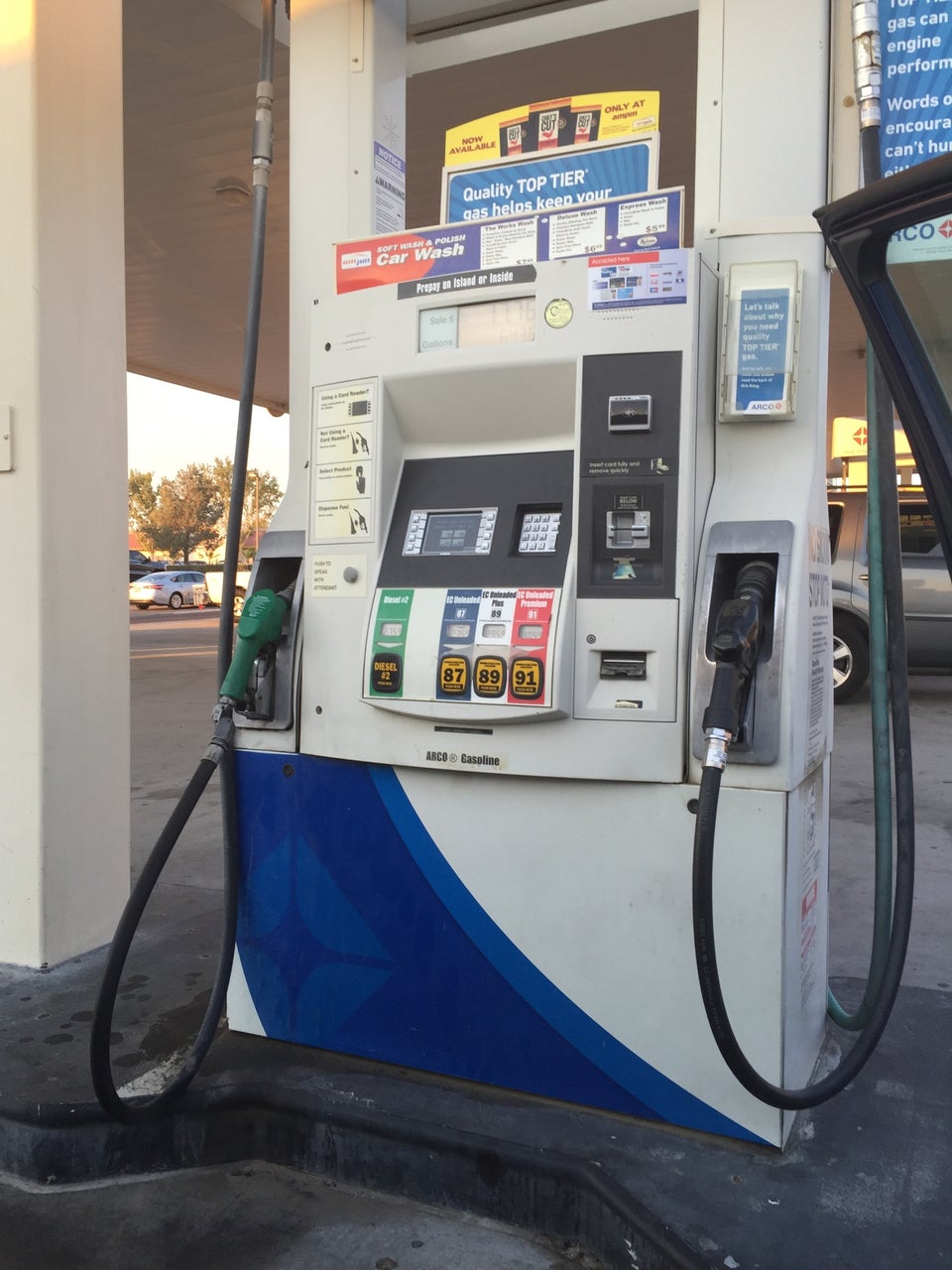 Quick stop for gas. Some pumps look like they've had a hard life. Inside was pretty clean. Super friendly employees. Nice selection of snacks and drinks. Phone cords etc. It's a normal ampm. Plenty of pumps and a car wash.
