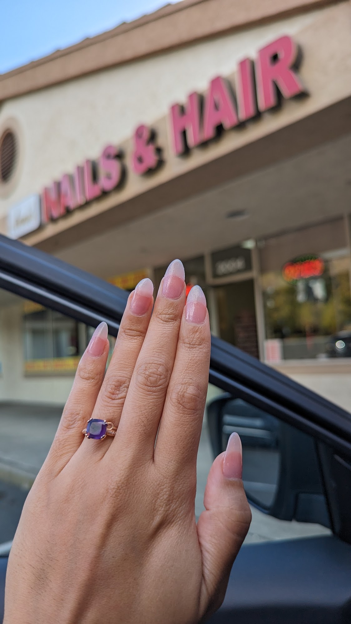 My favorite place to get.a manicure! while. my grandma gets a hair cut from Michael. Friendly staff, everyone greets me when I come in!!