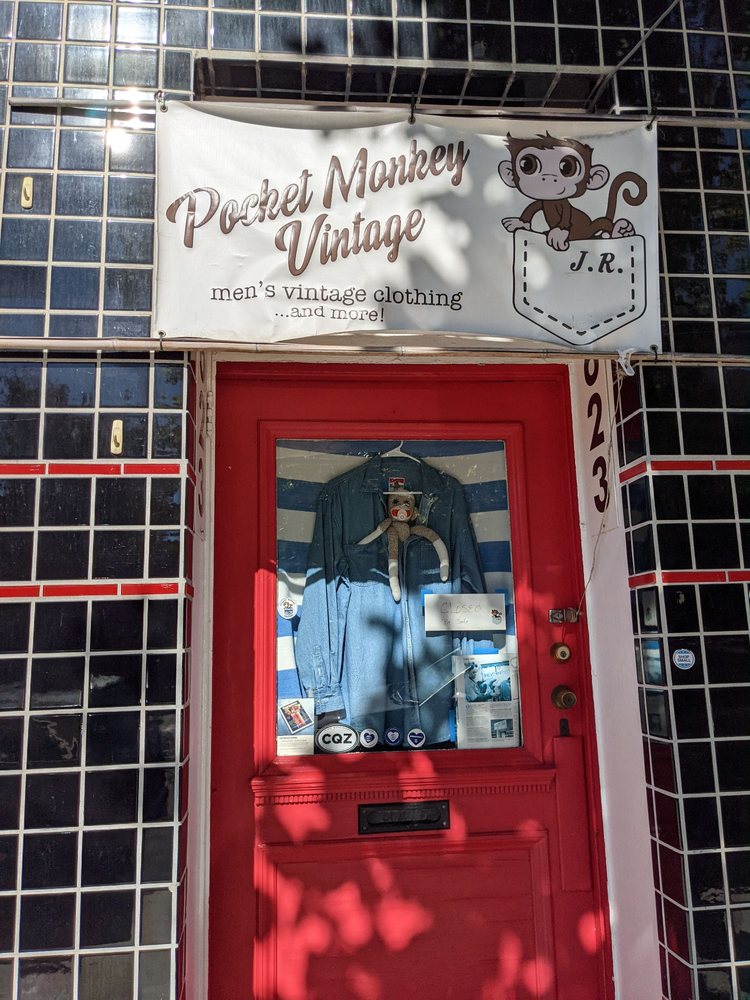 Pocket Monkey Vintage is a wonderful and really awesome store that rocks. It has recently moved to a bigger space, worth the effort to seek out. The shop offers a highly curated and huge selection of vintage clothing, mostly men's clothes, with a lot of cool vintage jeans and jackets and really cute stuff. Unlike online, you can try stuff on here. The owner is always friendly, very knowledgeable, professional, and helpful, a true gentleman who treats everyone with respect. He is a kick to chat with, loves sharing the history behind items, and is super helpful and sweet. The business provides a wide selection to choose from with reasonable prices. It is highly recommended to check it out.