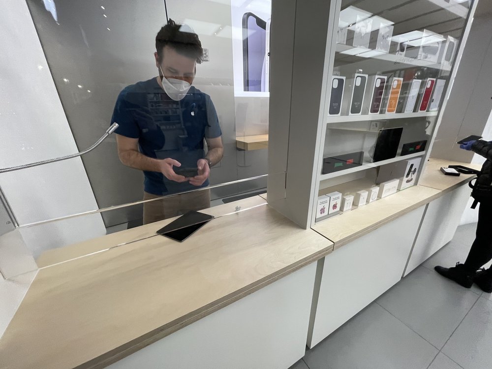 Immediately got serviced. Apple device help was outstanding. Clean floors and counters. Apple team will greet with smiles and I watched this as well while my 25minutes of service in store.