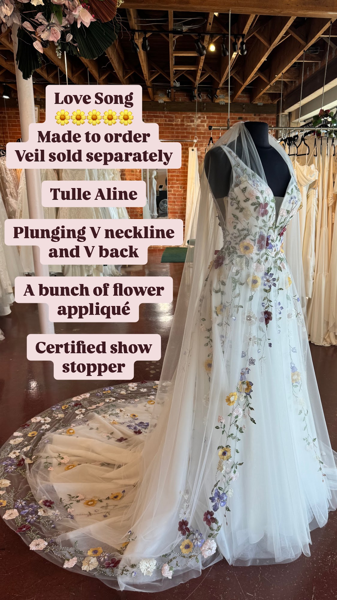 Huge selection of beautiful wedding gowns! Kind and knowledgeable staff that is concerned with finding the proper style and fit!