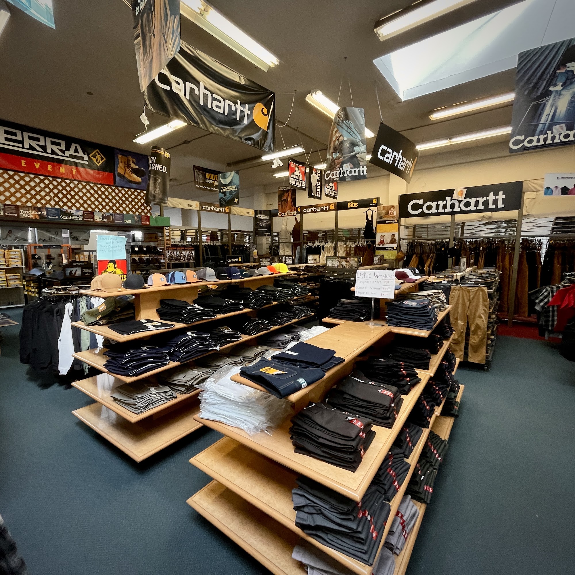 Great place for clothes, I looked online for Dickies and found Halmar. I got two pairs of Dickies brown, green pants and a flannel and great costumer service.