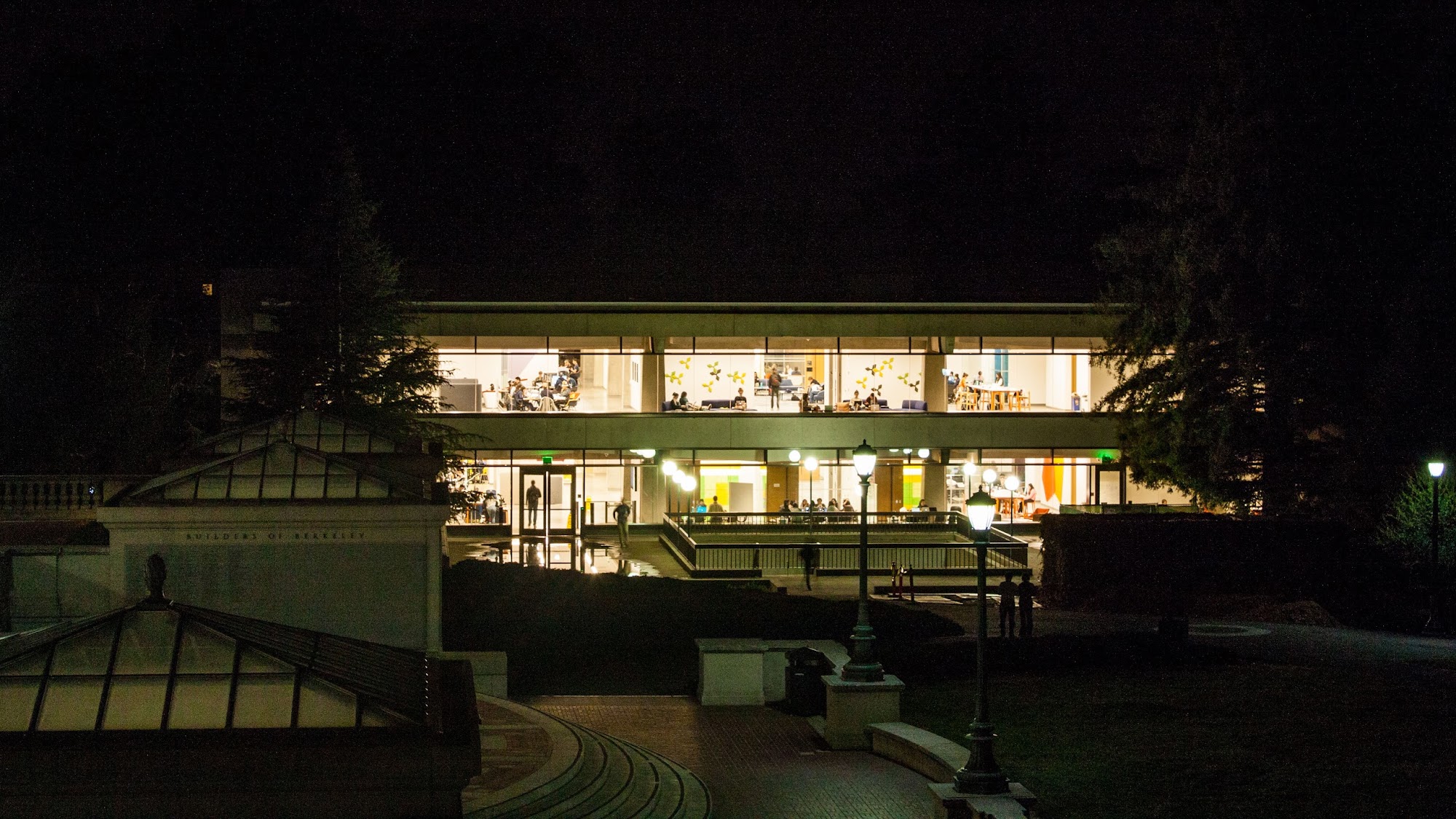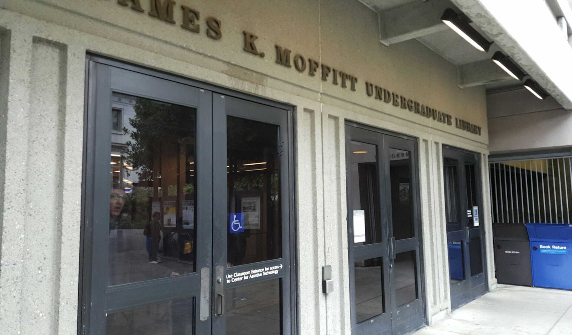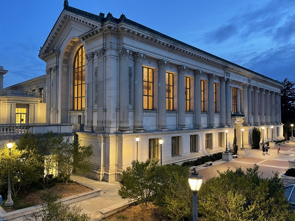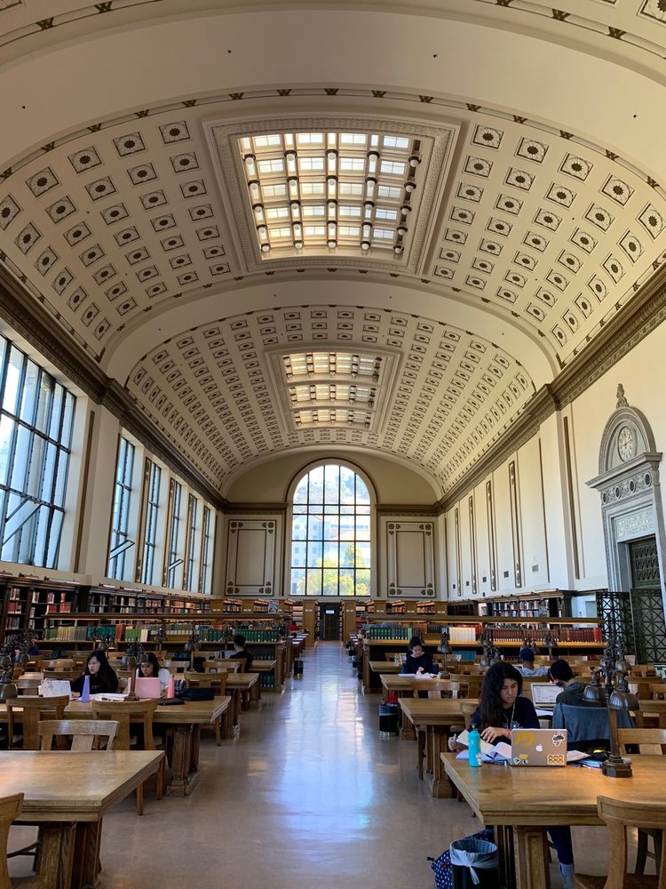 Moffitt Library is a great place for studying, with a noisy 4th floor for chatting and a quiet 5th floor for focused work. It offers plenty of seats, couches, and conference rooms available by reservation. The library is open 24 hours during the week, making it convenient for students. However, it can be crowded and has issues with temperature control, impacting comfort for those studying.