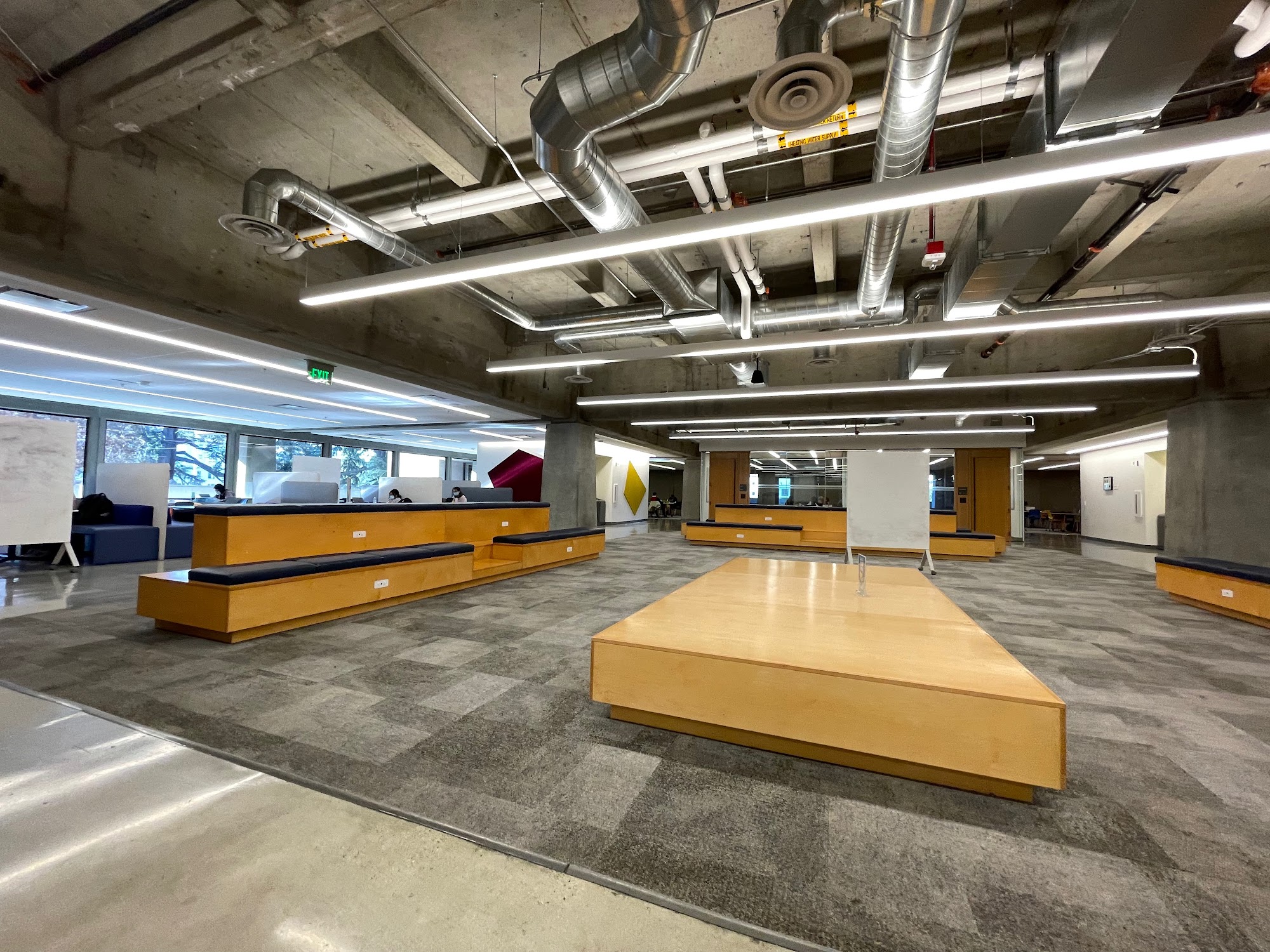 Great library for studying - 4th floor is a noisy floor where you're able to chat with ppl while working - 5th floor is silence - plenty of seats + couches all over + conferences rooms are available with tables and seats (upon reservation). overall a great library. OPEN 24 HRS during the week