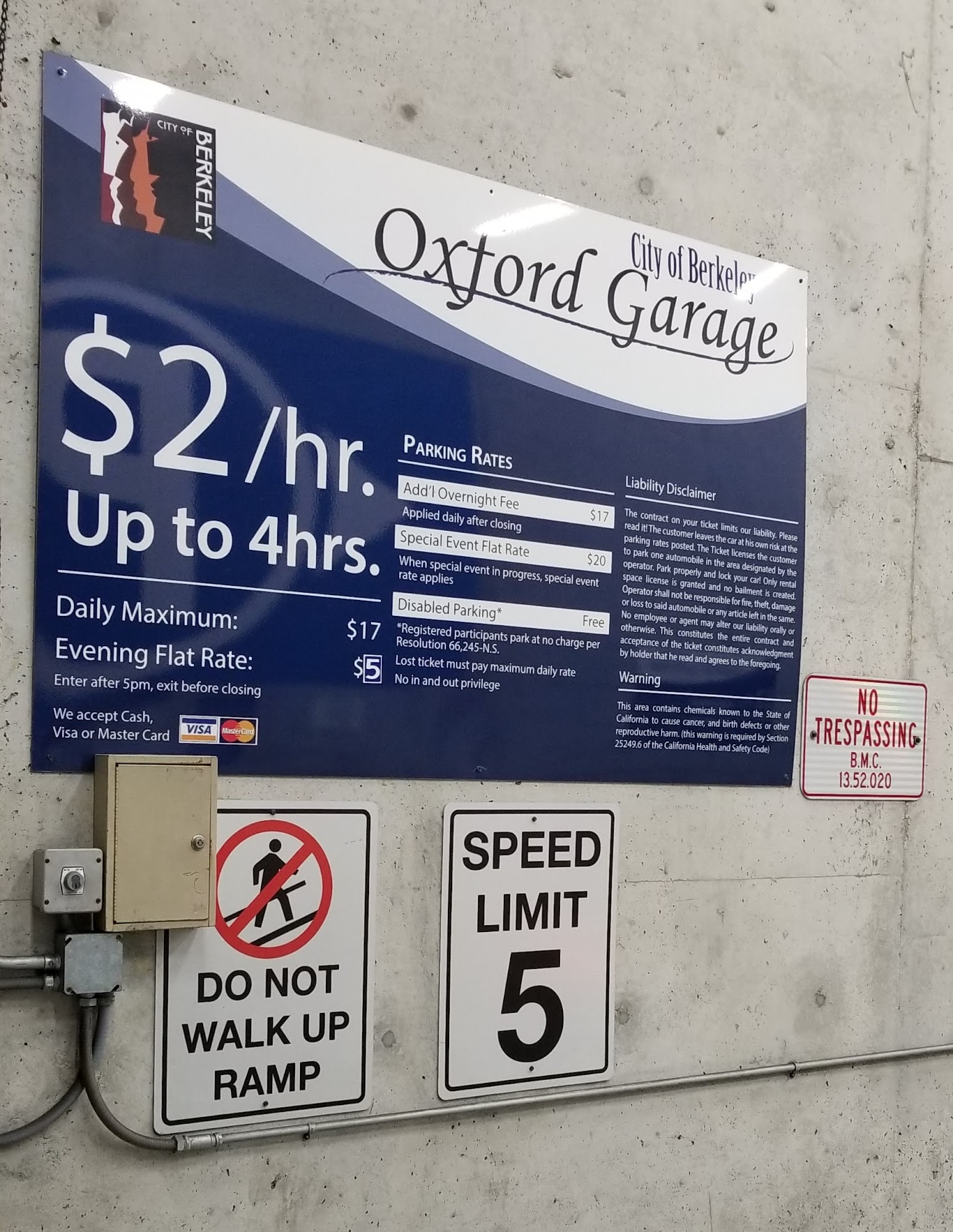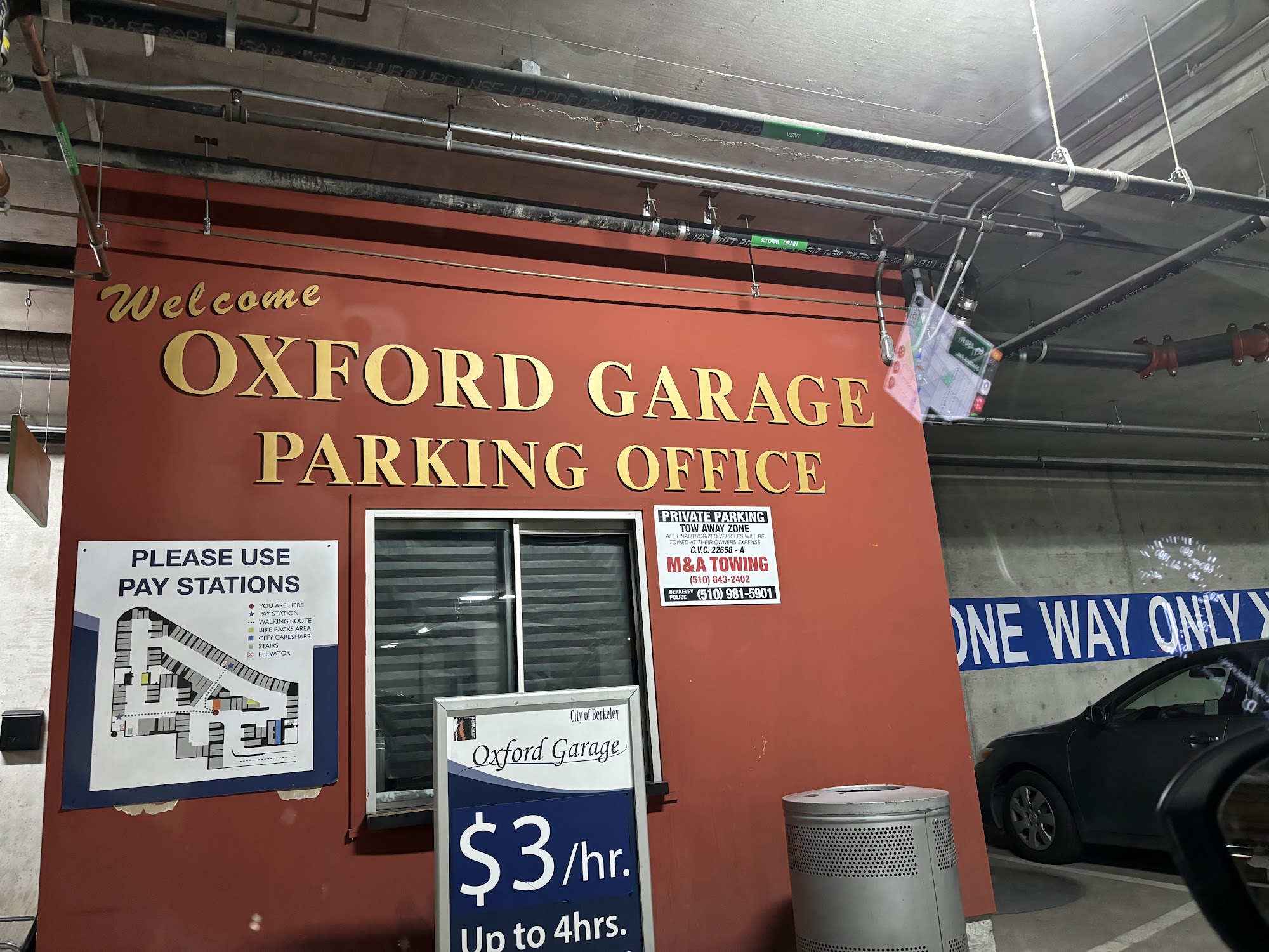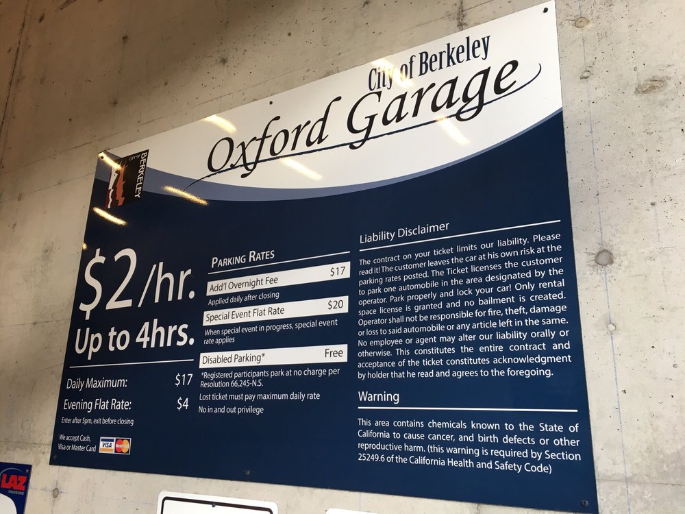 As of Saturday, September 14, 2024. Street parking in the vicinity was $4 an hour with two hour limit. So I preferred the Oxford Garage covered parking. The garage office was closed this day. This photo was taken during daytime.